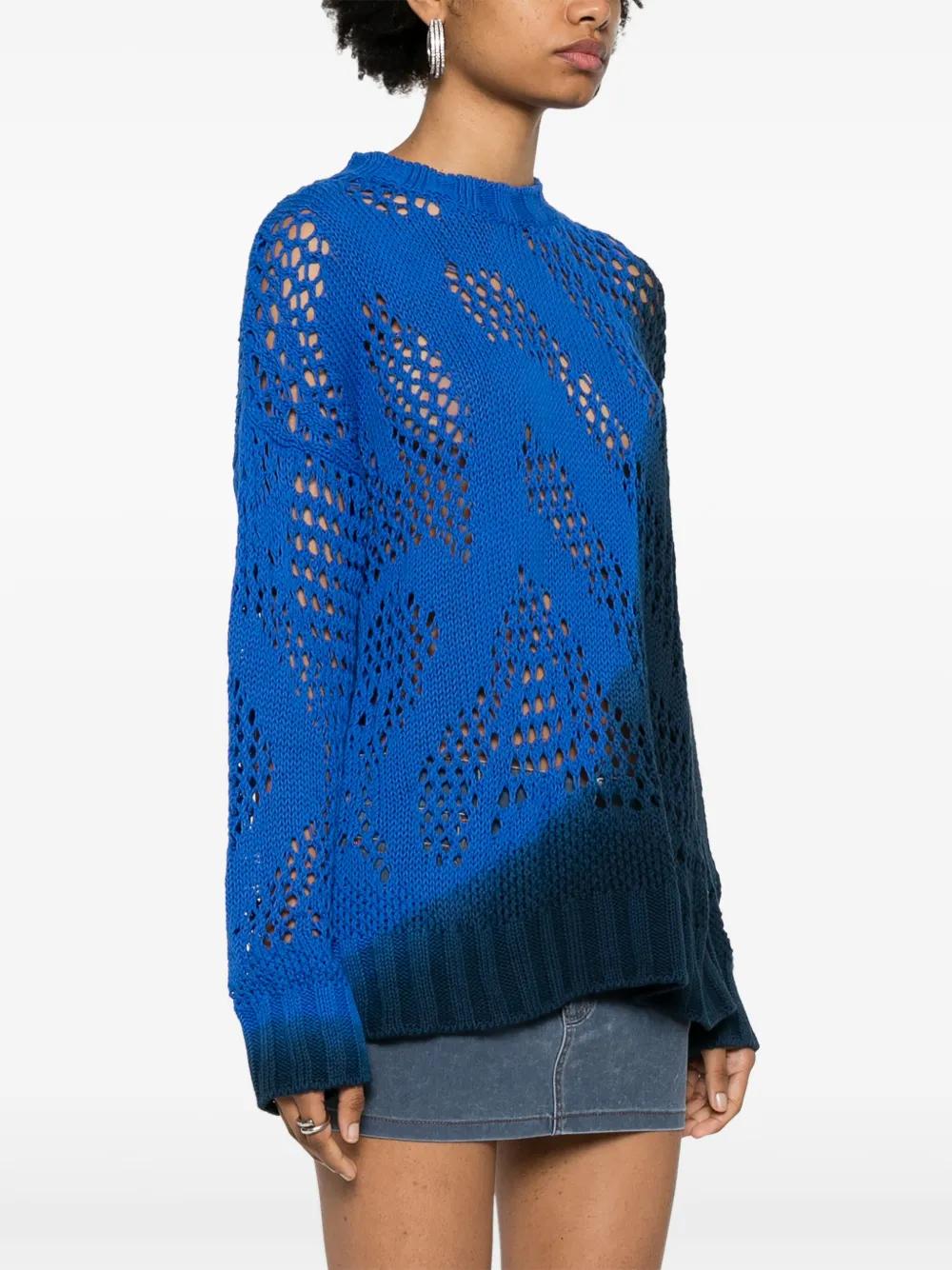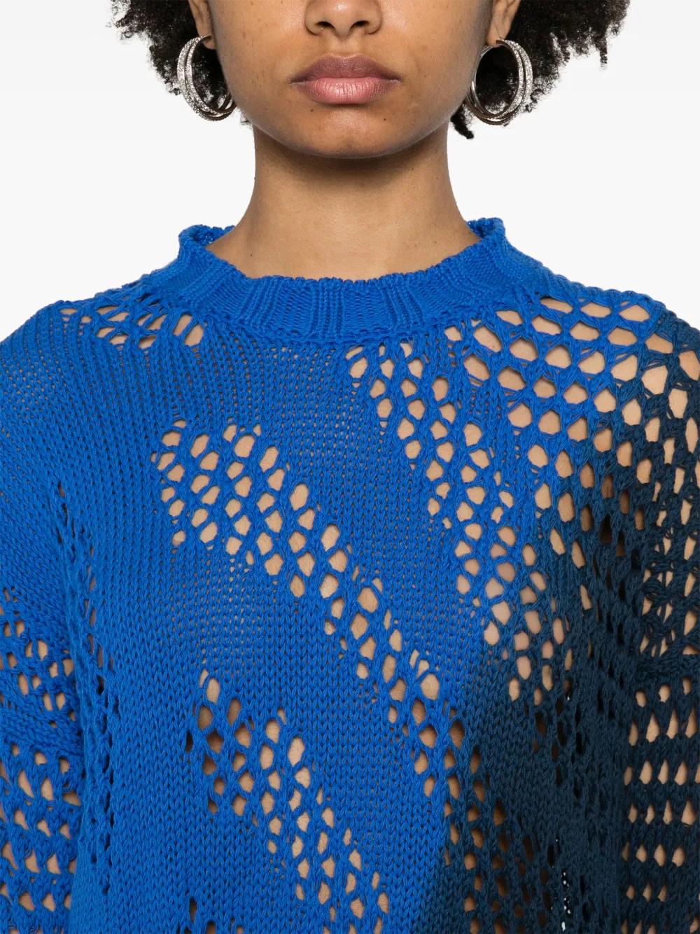 royal blue/navy blue cotton open knit colour-block design crew neck drop shoulder long sleeves ribbed cuffs and hem unlined