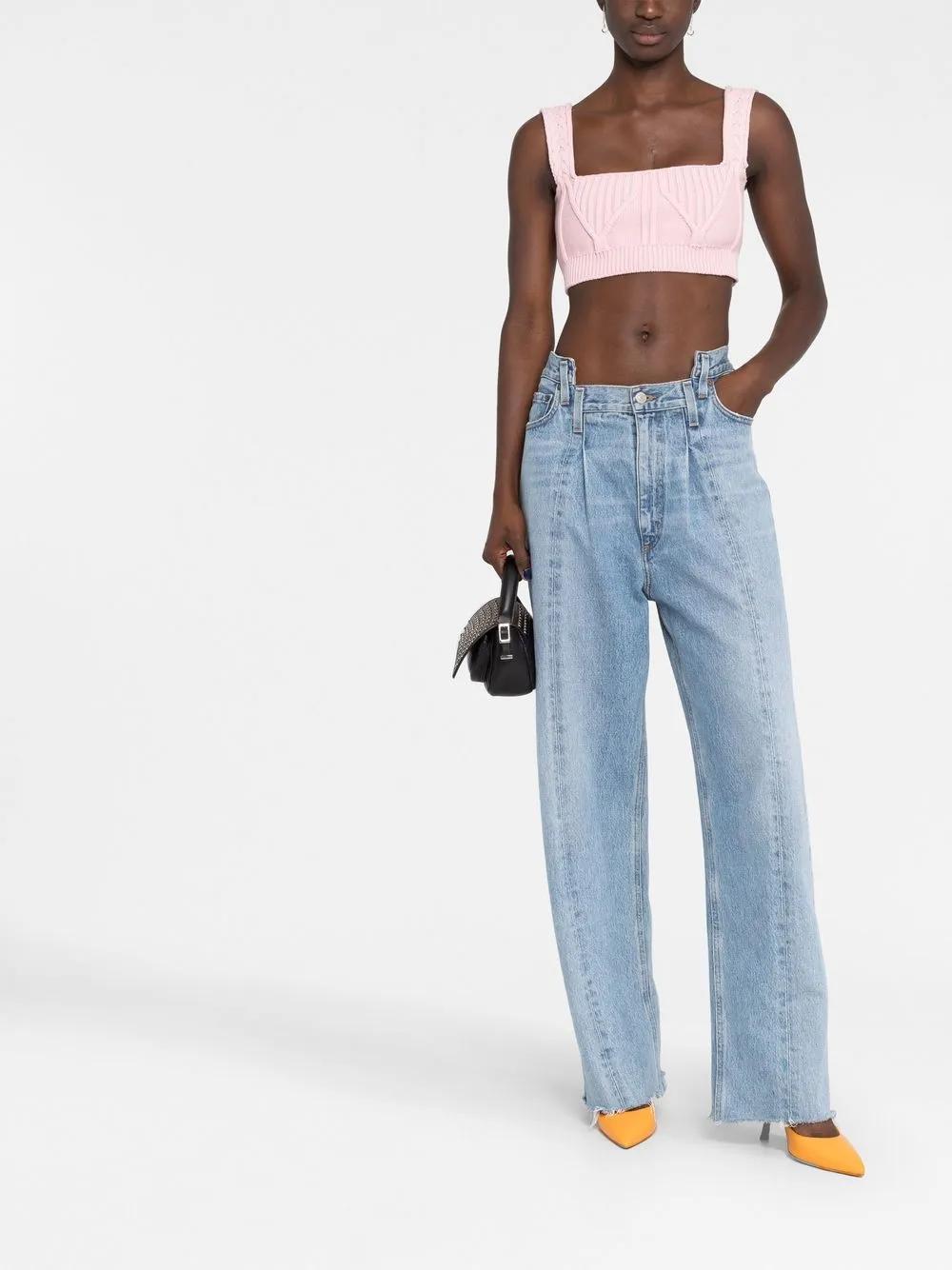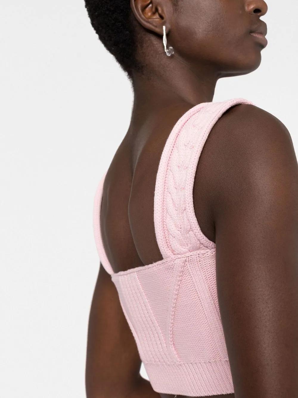 light pink cotton blend ribbed knit square neck sleeveless straight hem cropped