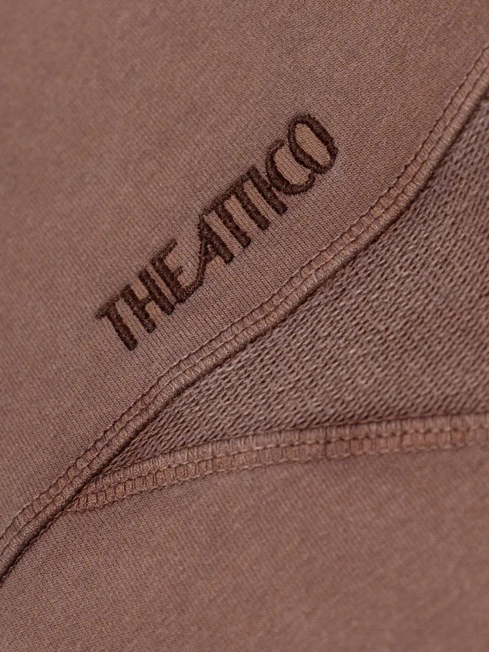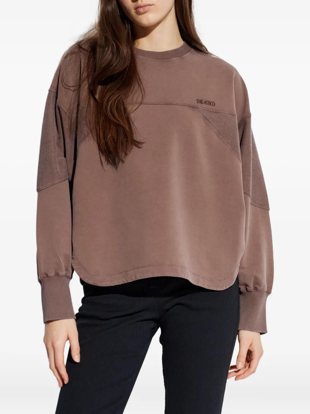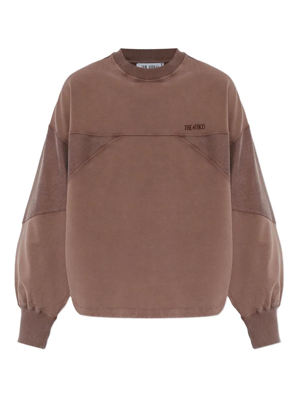 light brown panelled design embroidered detail ribbed cuffs ribbed hem round neck