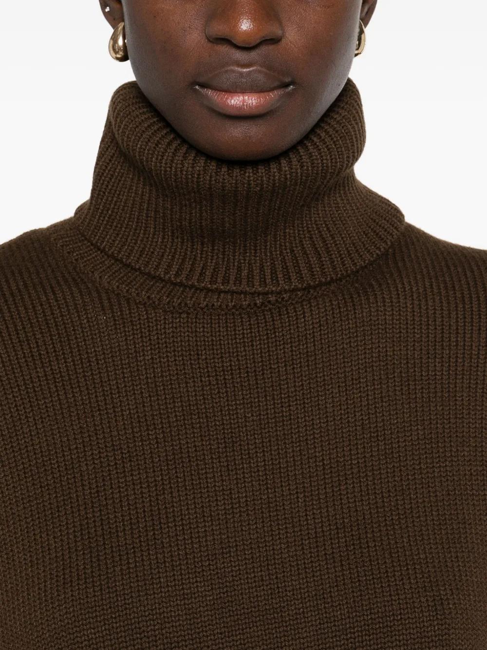 brown ribbed knit roll-neck long sleeves ribbed cuffs and hem