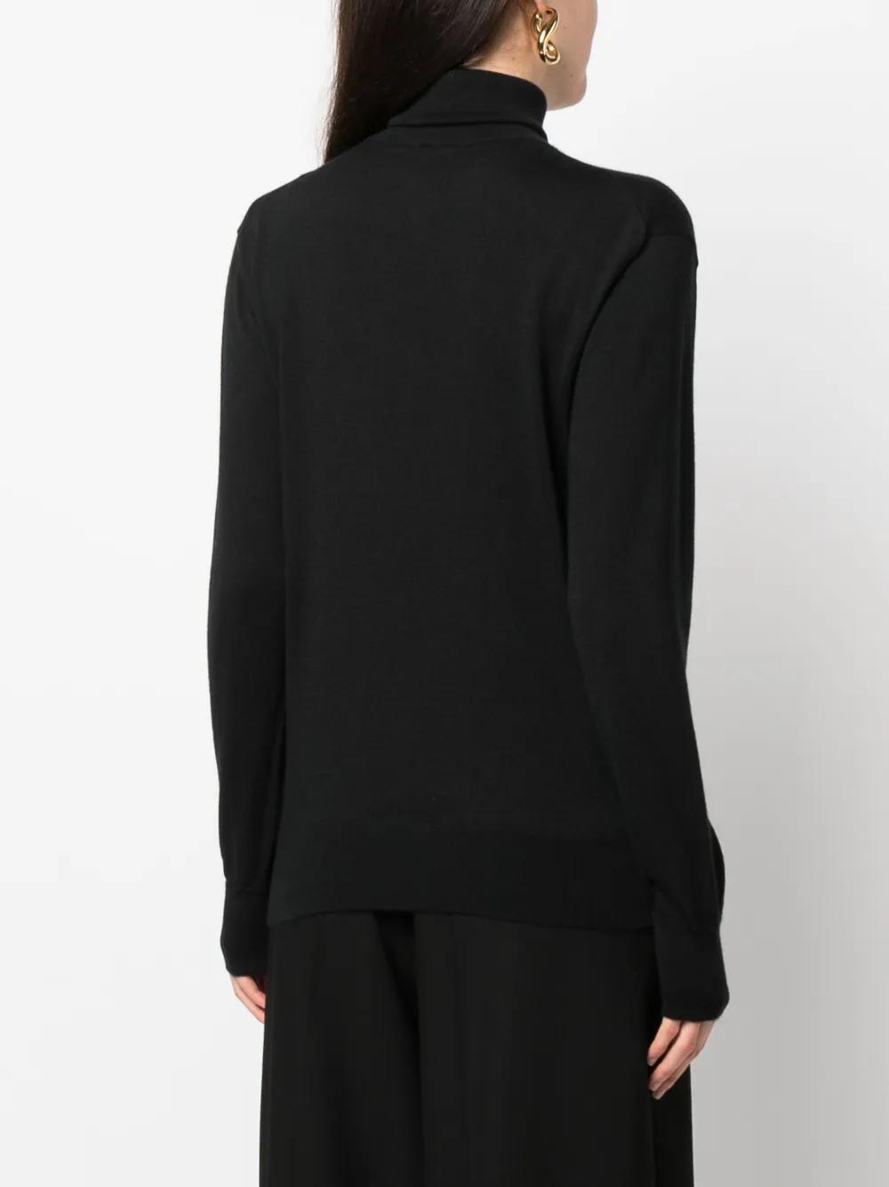 black wool-cashmere blend knitted construction roll neck long sleeves ribbed cuffs and hem straight hem