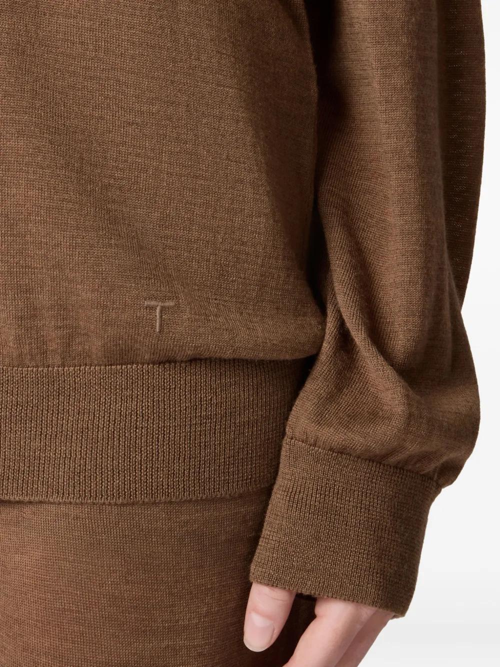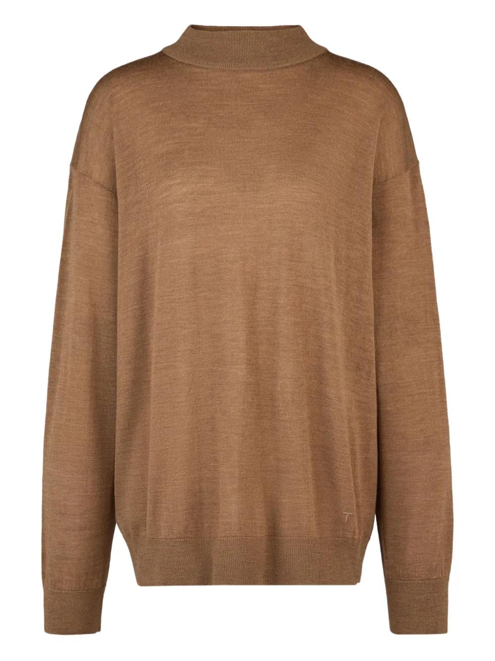 brown mock neck long sleeves ribbed hem and cuffs tonal logo detail