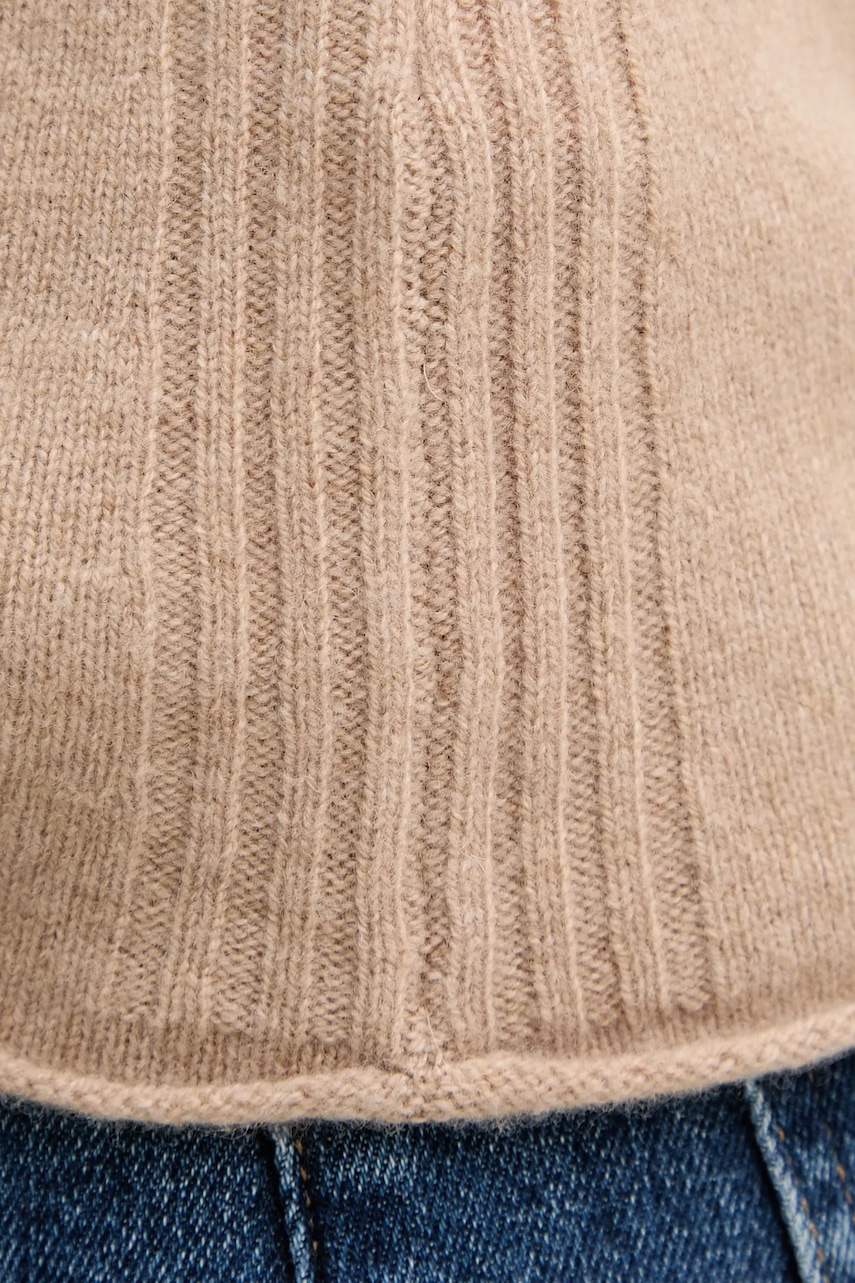 - Model wykonany częściowo z wełny z recyklingu. - Prosty, nie blokujący ruchów fason. - Długi rękaw. - Ozdobny, spiczasty dekolt. - Długość rękawa: 69 cm. - Długość: 58 cm. - Szerokość pod pachami: 46 cm. - Wymiary podane dla rozmiaru: S.