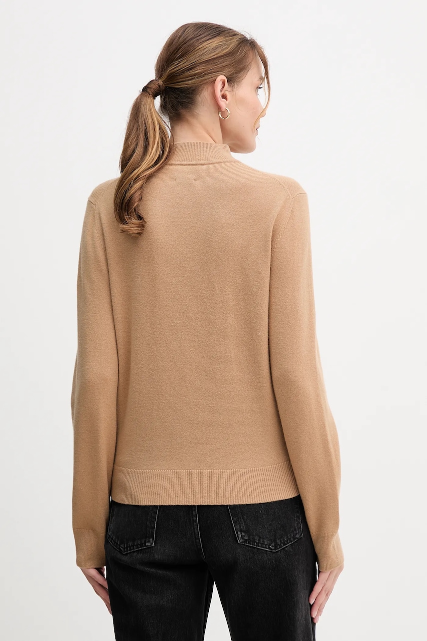 Tommy Hilfiger sweter wełniany damski kolor brązowy lekki z półgolfem WW0WW47468