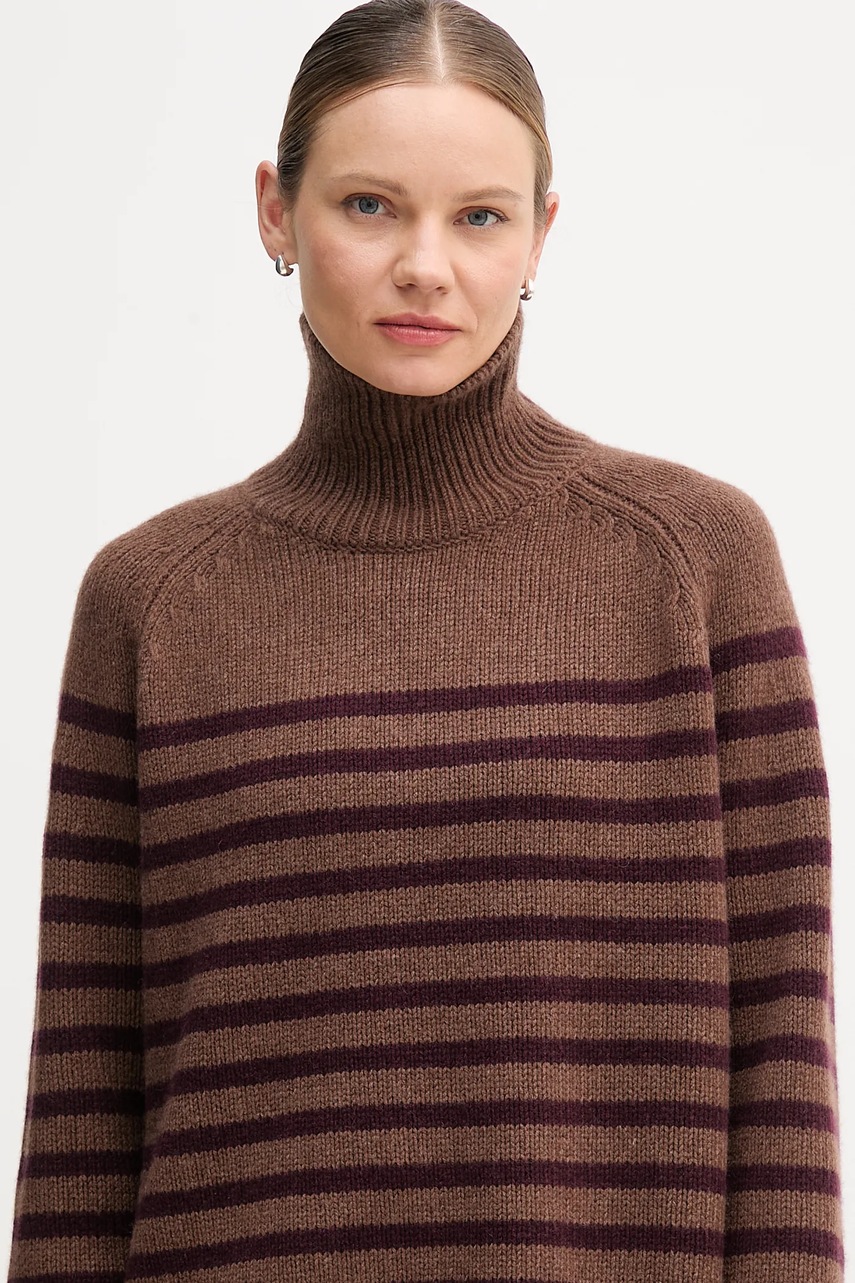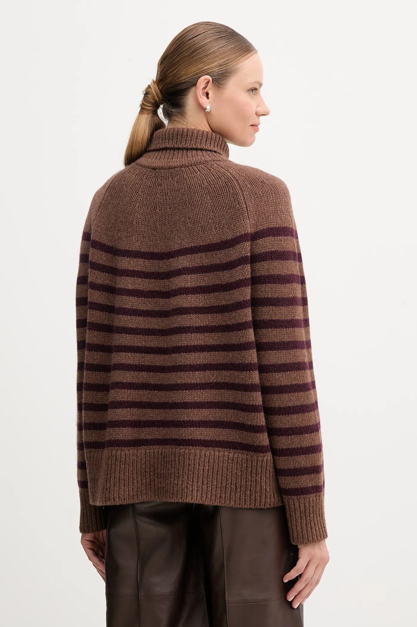 Tommy Hilfiger sweter wełniany damski kolor brązowy z golfem WW0WW46413