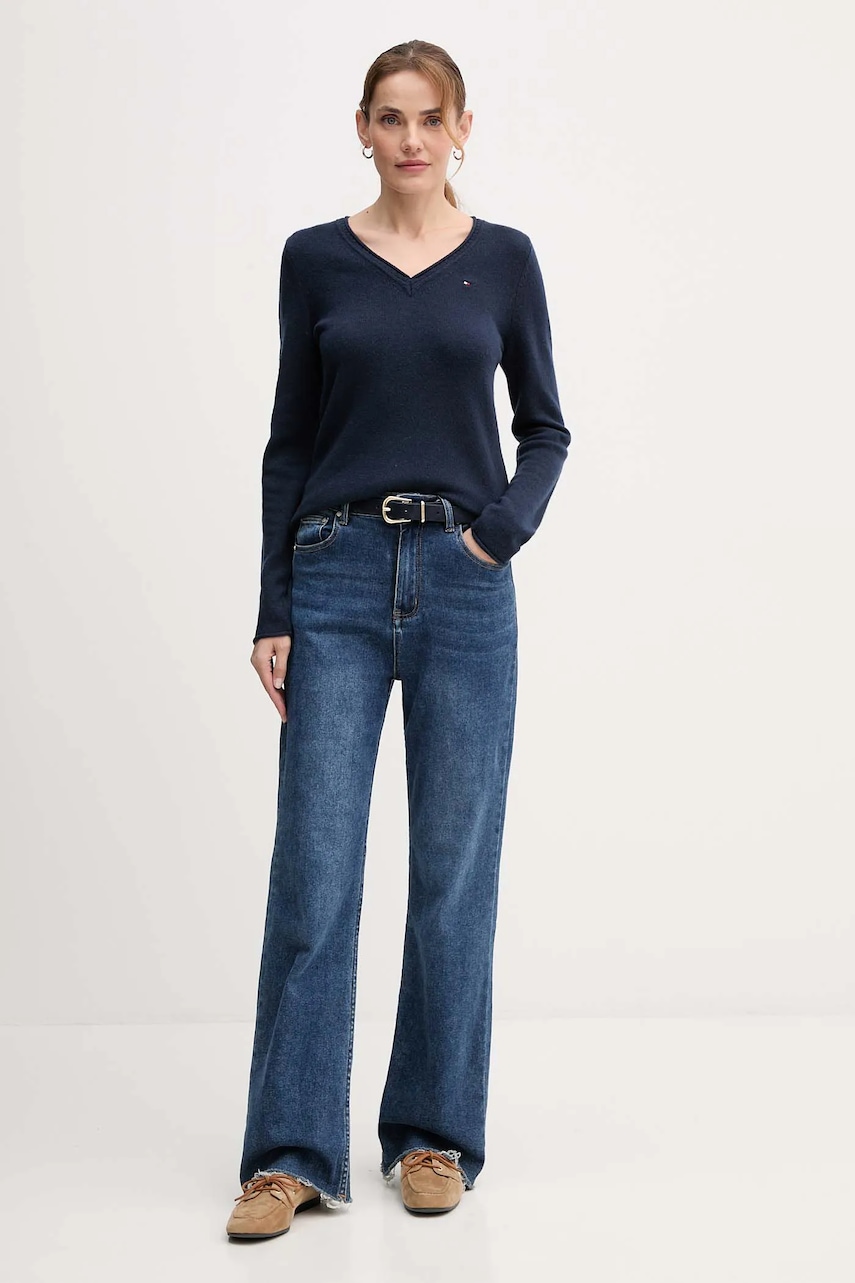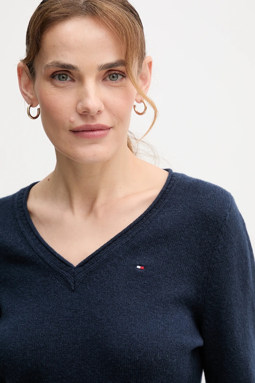 Tommy Hilfiger sweter wełniany damski kolor granatowy lekki WW0WW43505