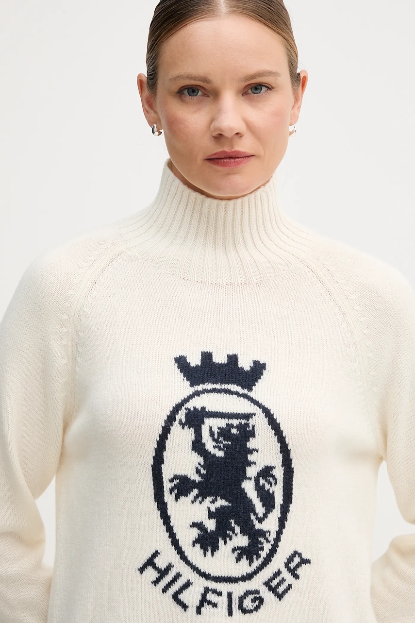 Tommy Hilfiger sweter z dodatkiem wełny damski kolor beżowy z półgolfem WW0WW46434