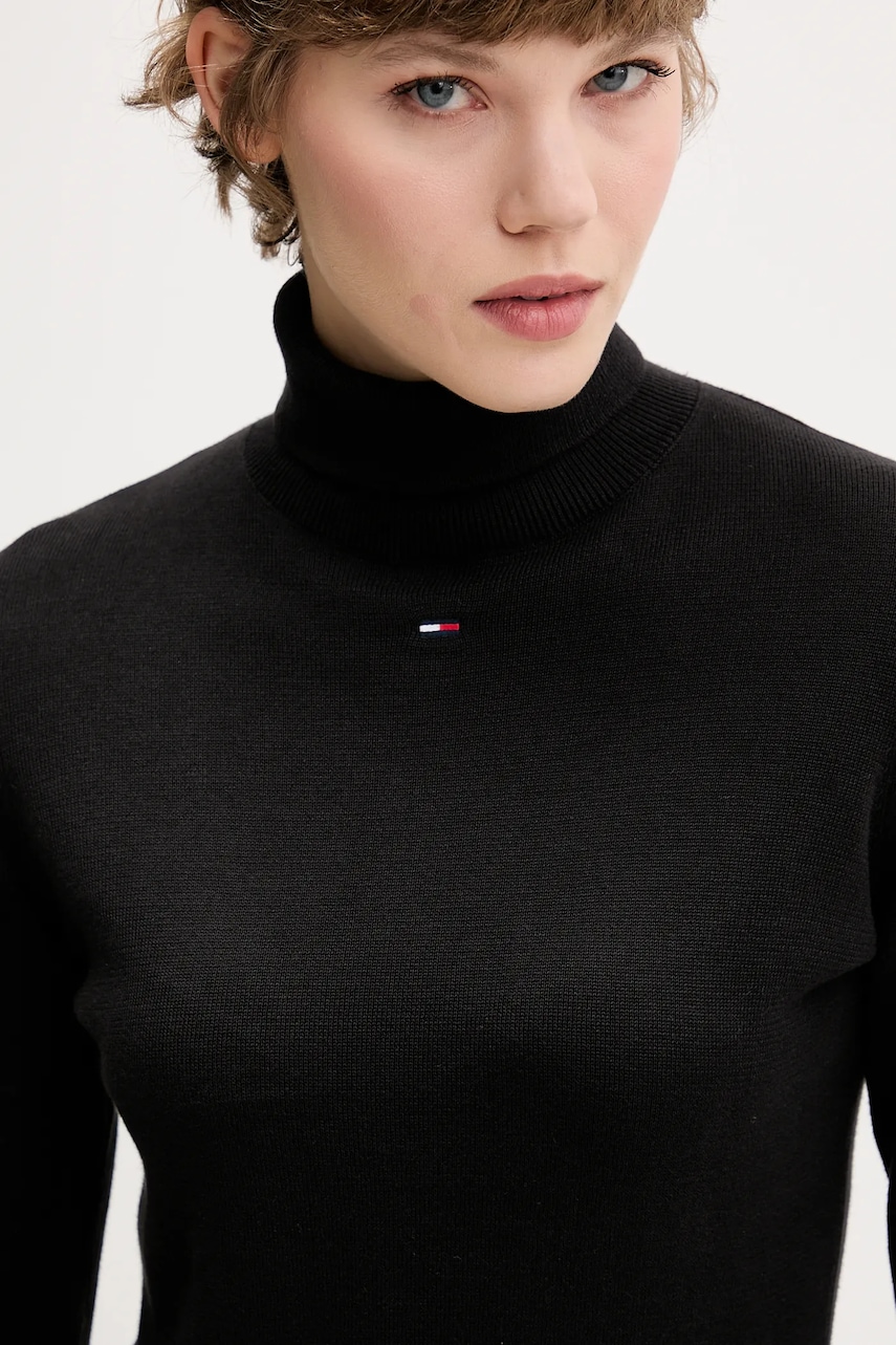 Tommy Jeans sweter bawełniany damski kolor czarny lekki z golfem DW0DW21672