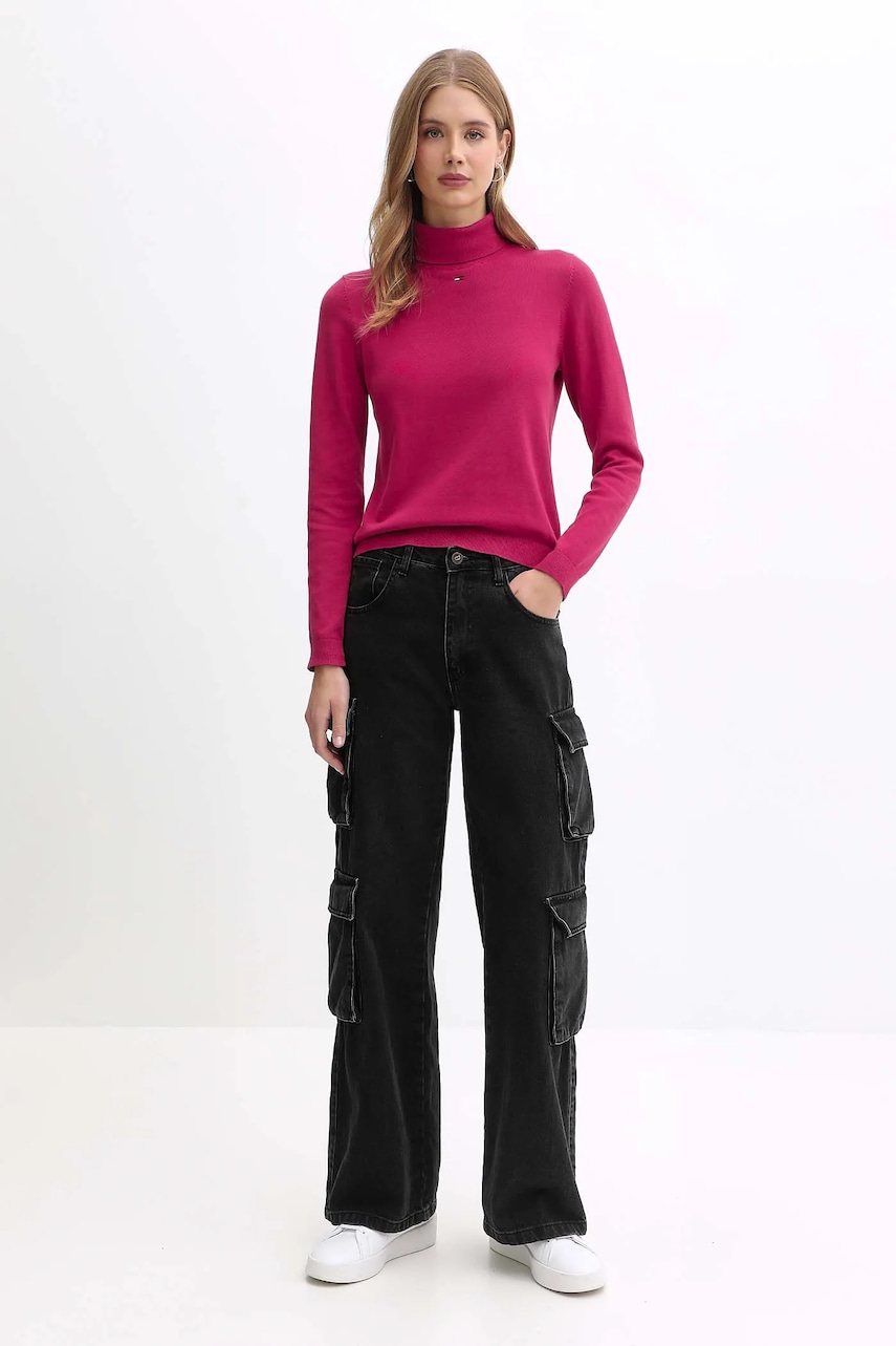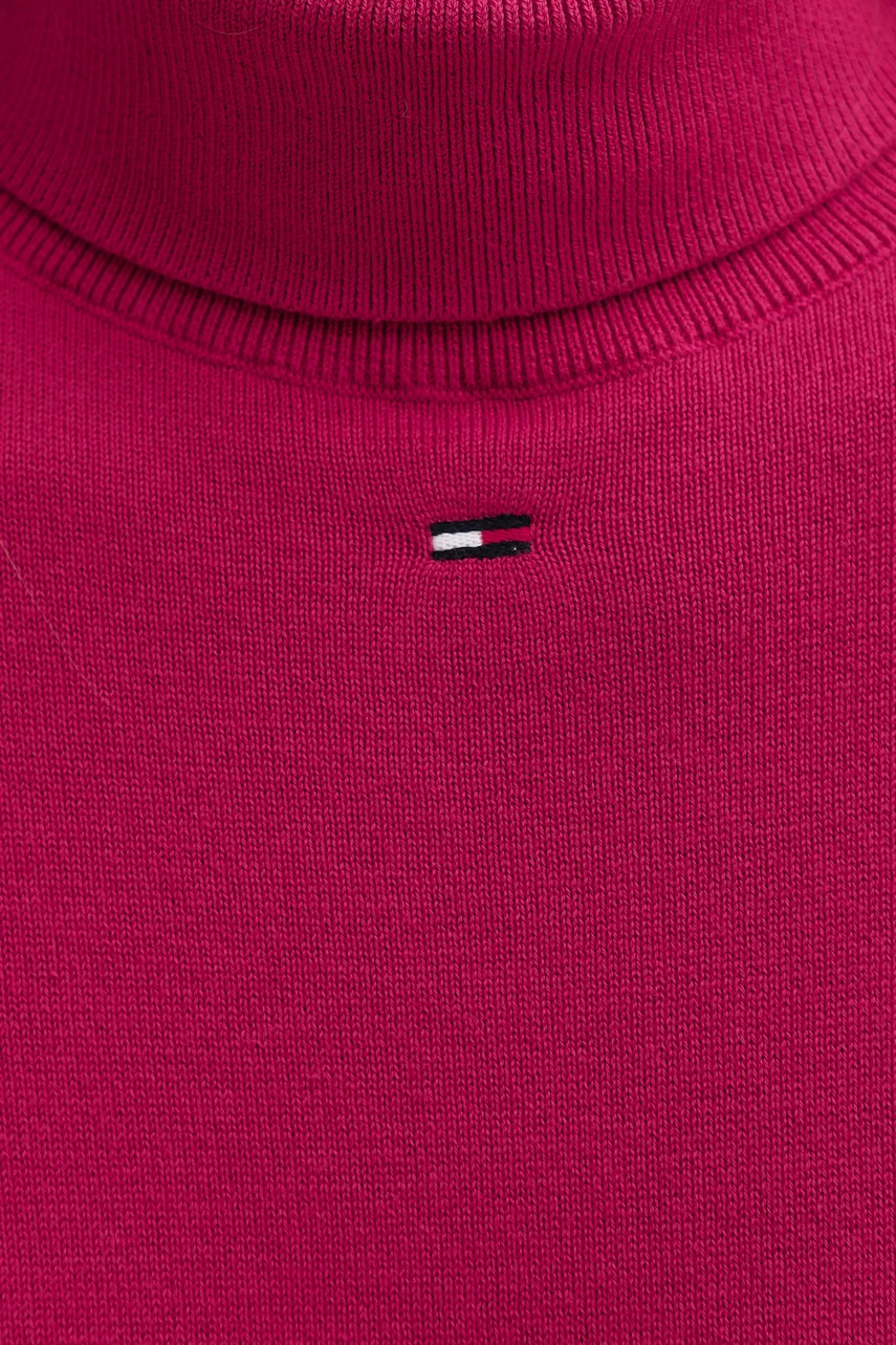 Tommy Jeans sweter bawełniany damski kolor różowy lekki z golfem DW0DW21672