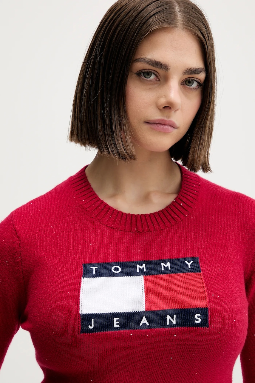 Tommy Jeans sweter damski kolor bordowy DW0DW21690