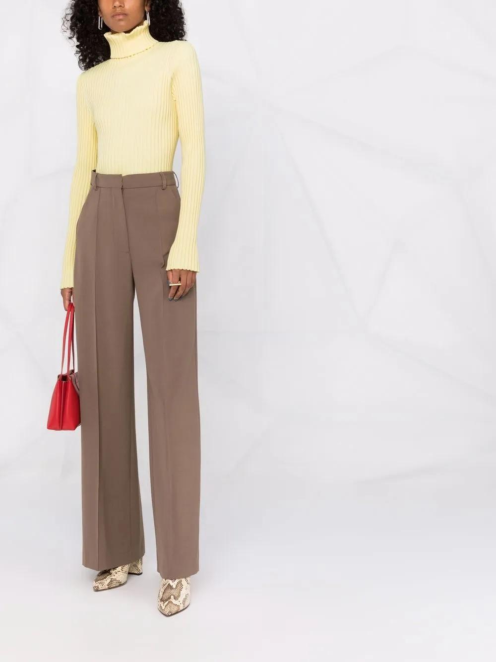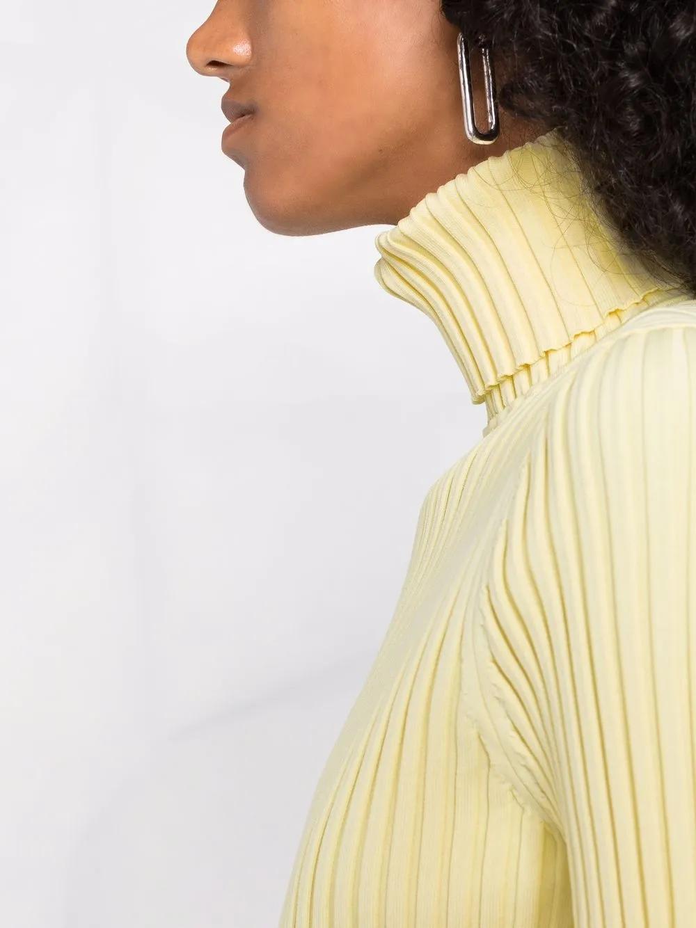 lemon yellow ribbed knit roll neck long sleeves straight hem