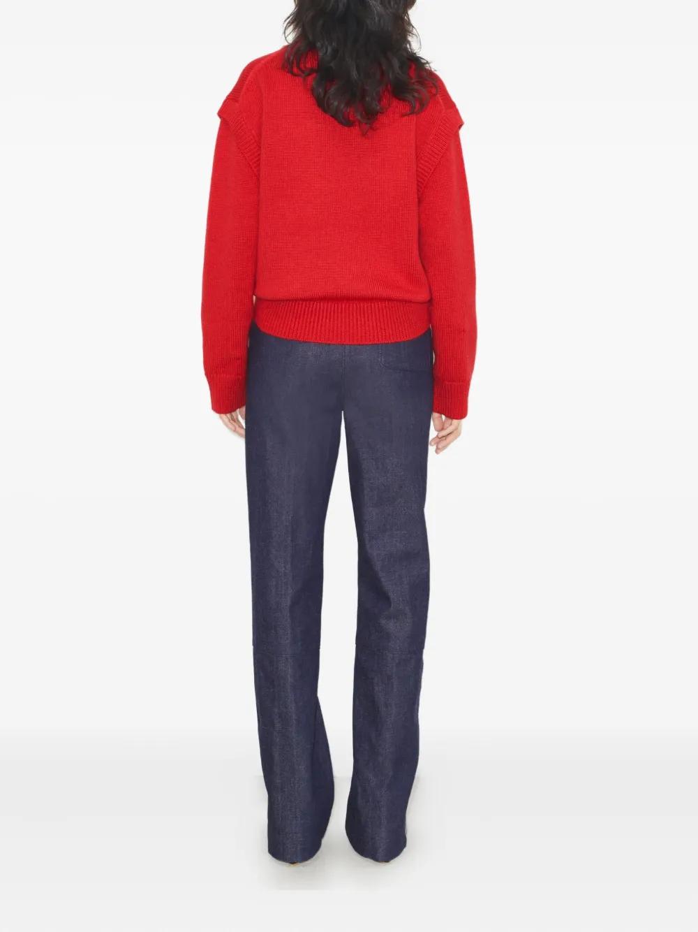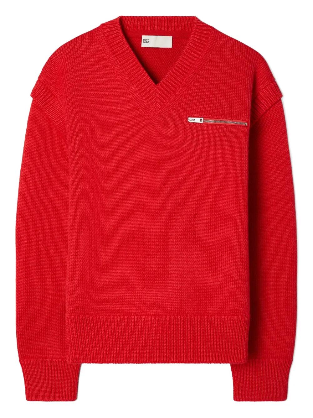 crimson v-neck zip detail long sleeves ribbed knit wool