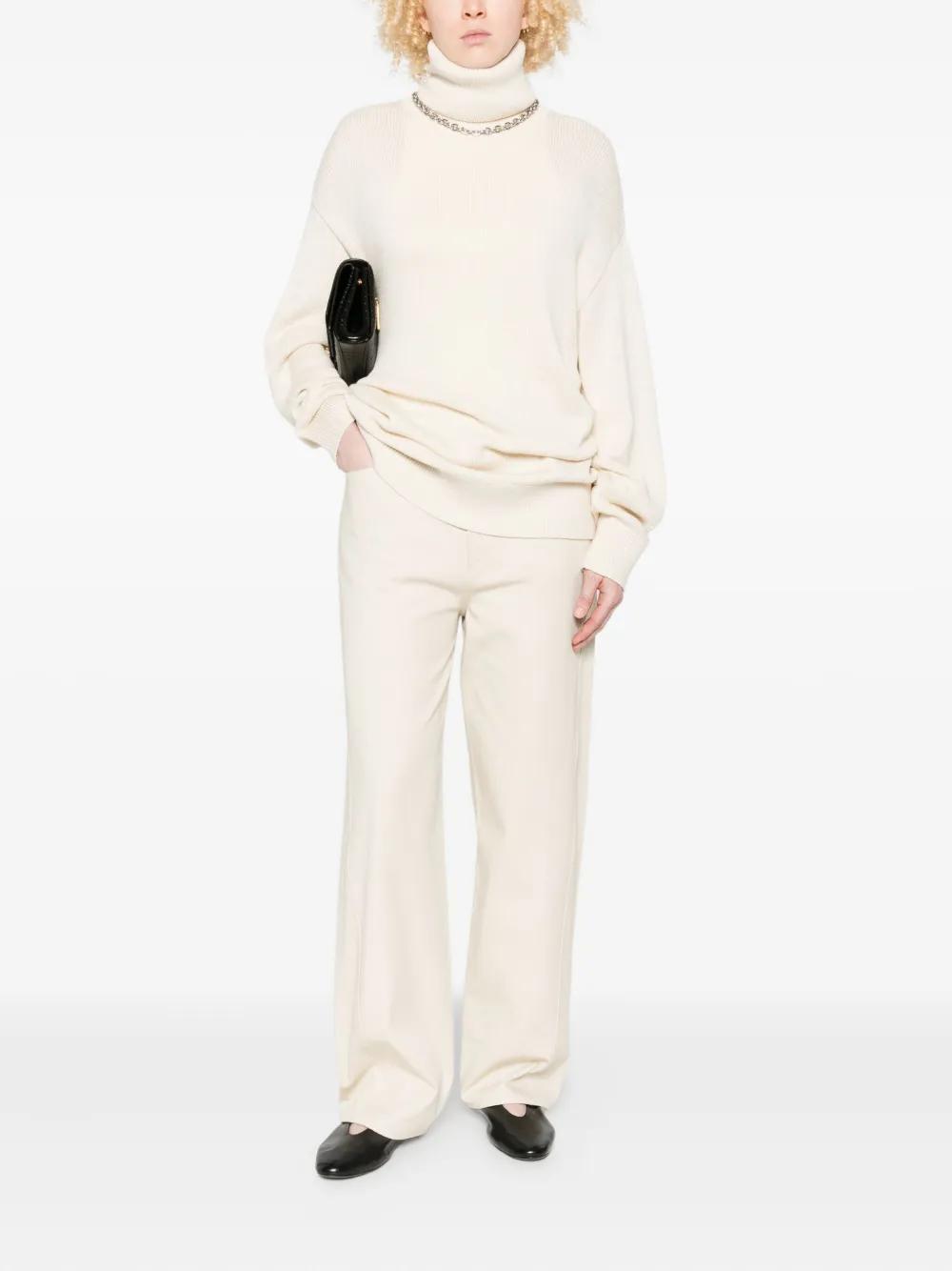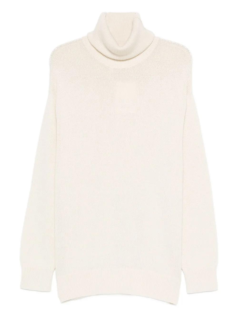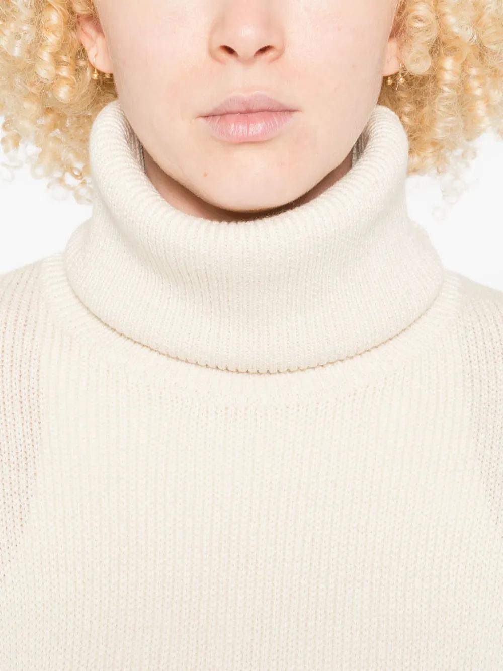 off-white turtleneck neckline long sleeves ribbed trims straight hemline
