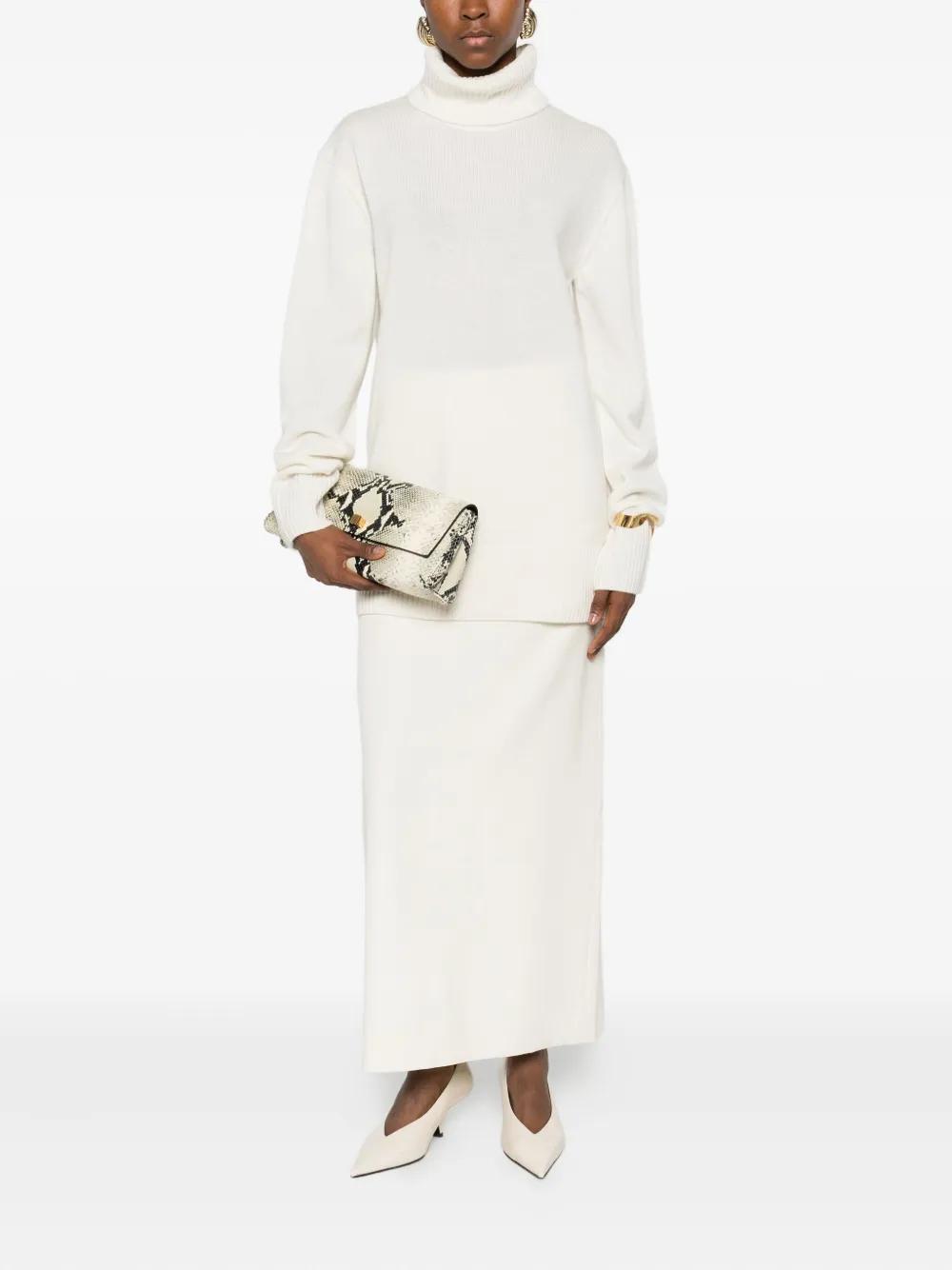 light beige ribbed cuffs and hem roll neck long sleeves fine knit