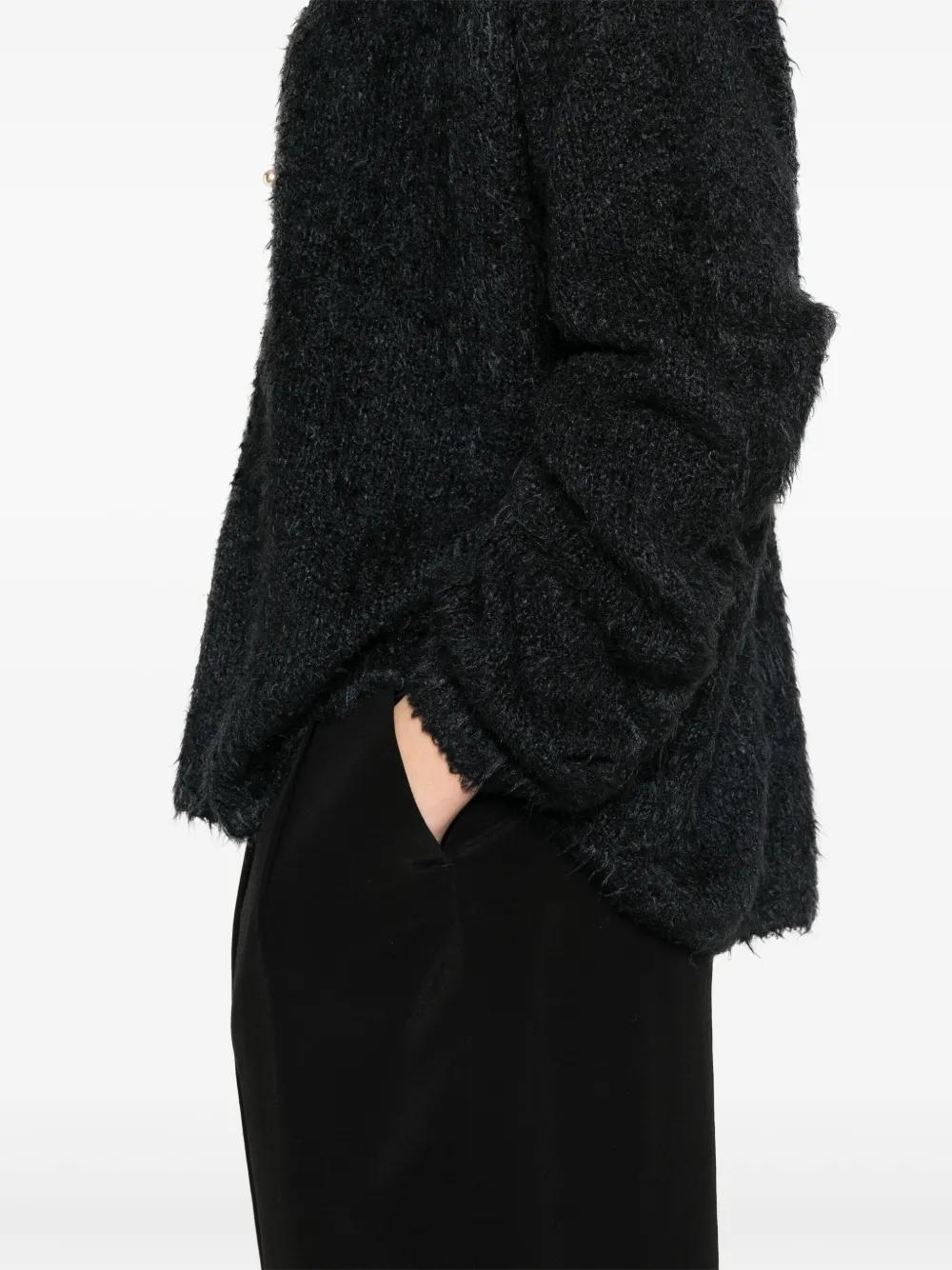 - Fason relaxed. - Model z półgolfem. - Posiada boczne rozcięcia. - Wzorzysta dzianina. - Długość rękawa(mierzona od dekoltu): 73 cm. - Długość: 67 / 73 cm. - Szerokość pod pachami: 58 cm. - Wymiary podane dla rozmiaru: 36.