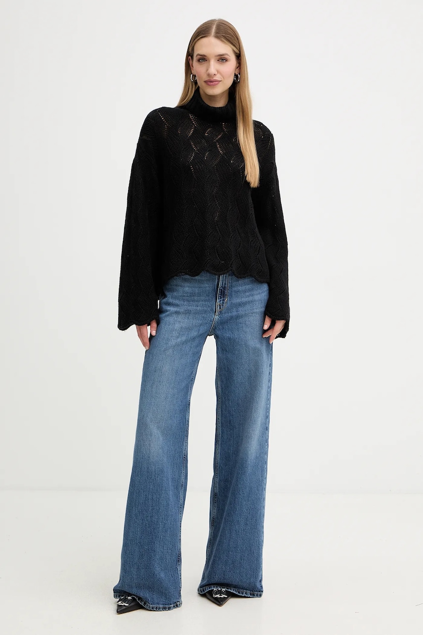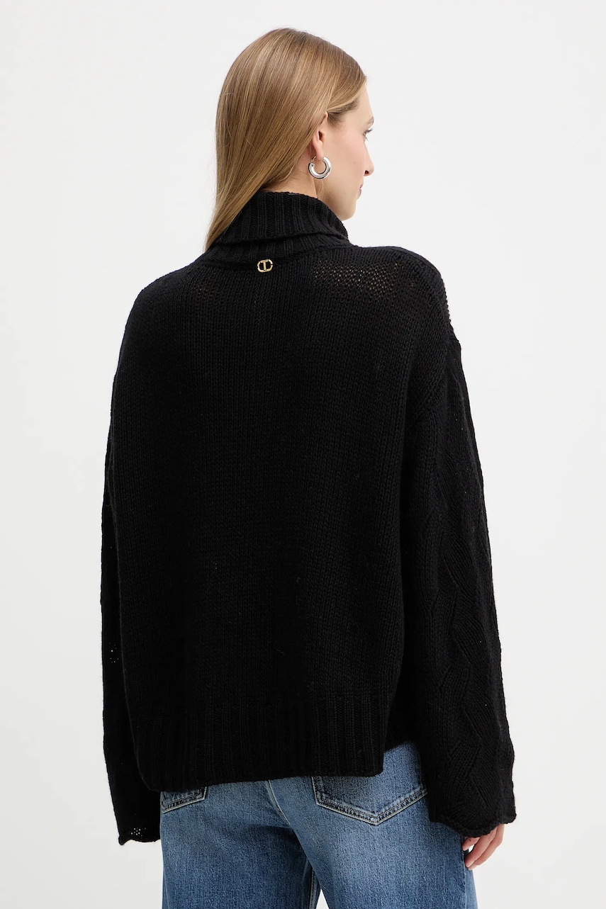 Twinset sweter z dodatkiem wełny damski kolor czarny ciepły z golfem 252TT3424