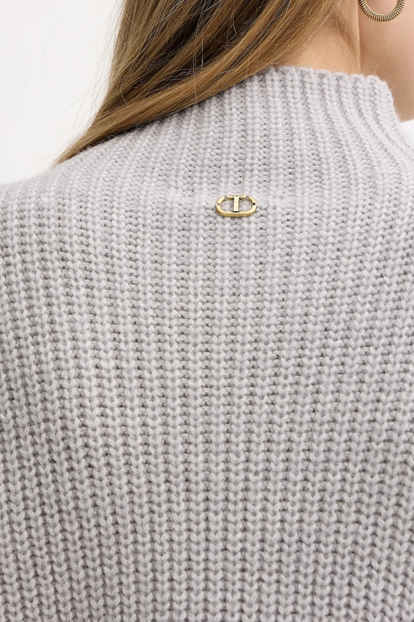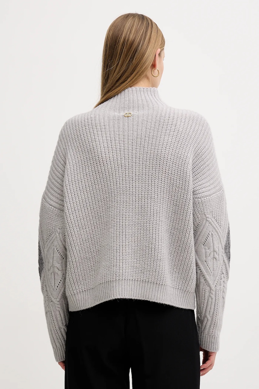 Twinset sweter z dodatkiem wełny damski kolor szary z golfem 252TT3290