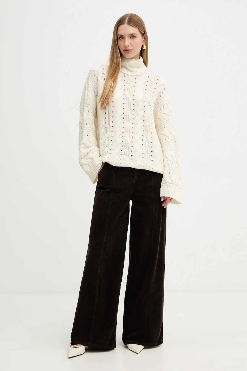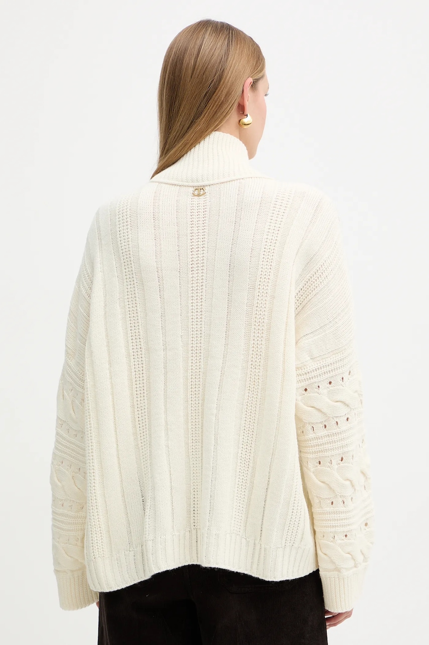 Twinset sweter z wełną damski kolor beżowy ciepły z golfem 252TT3101