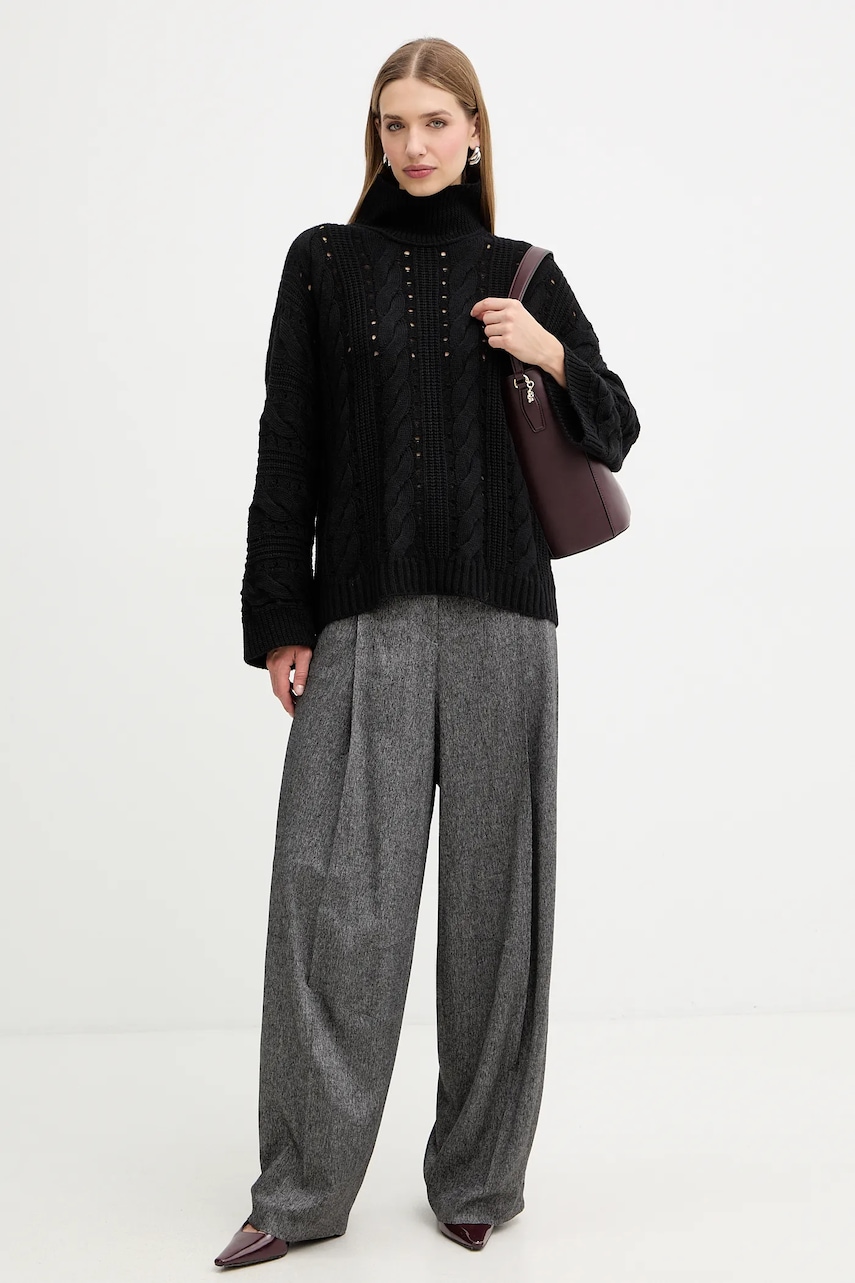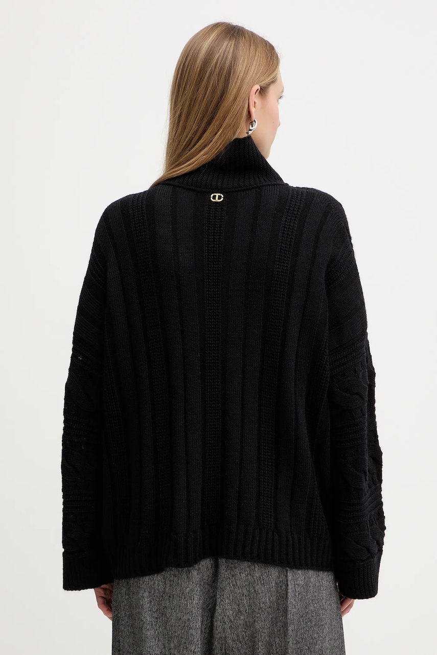 Twinset sweter z wełną damski kolor czarny ciepły z golfem 252TT3101
