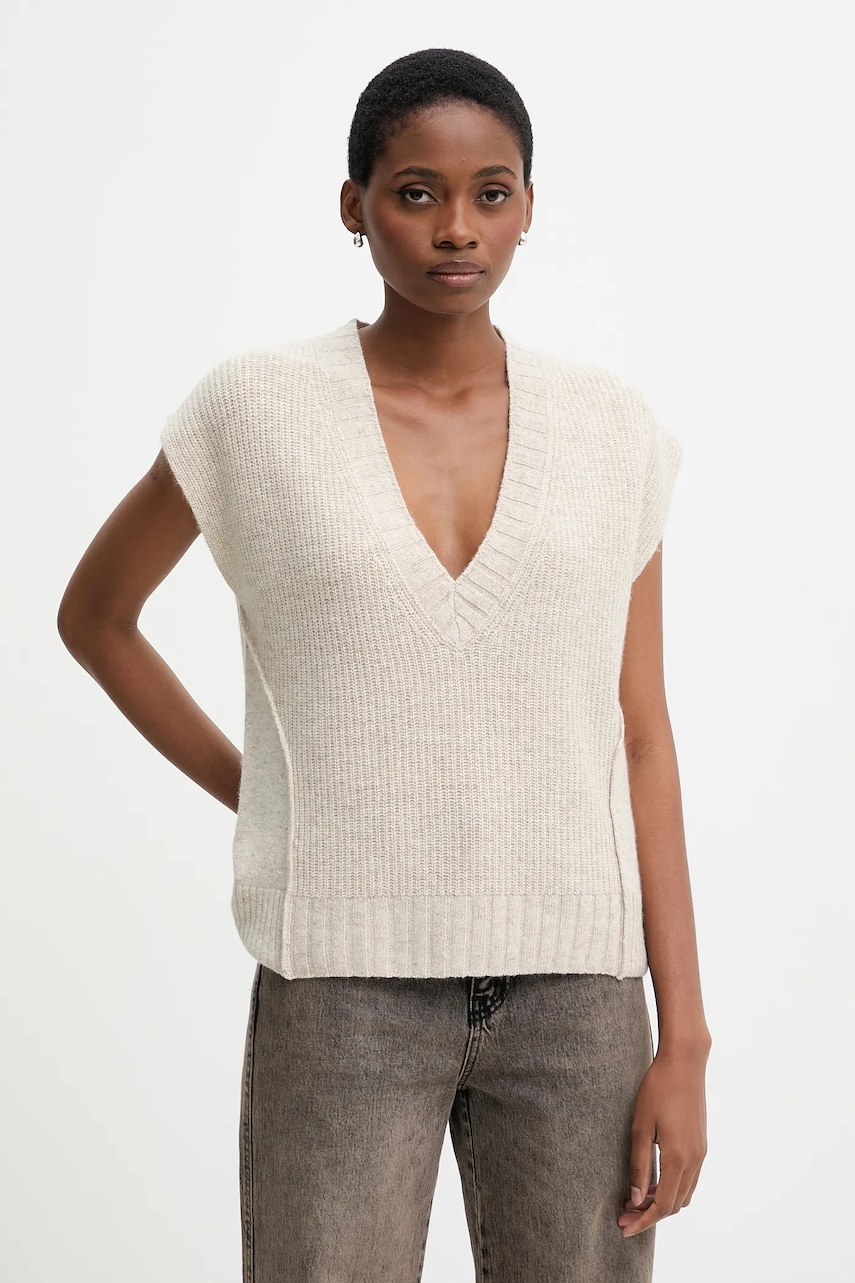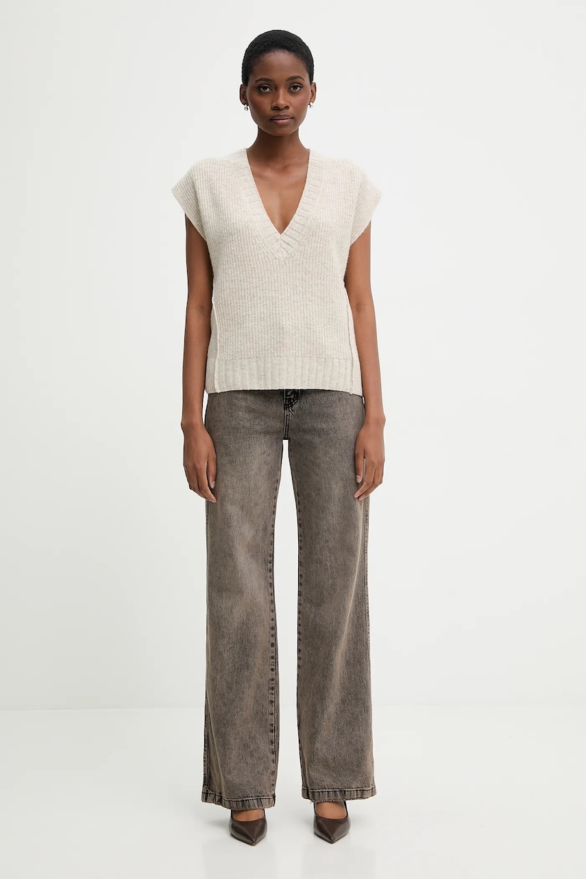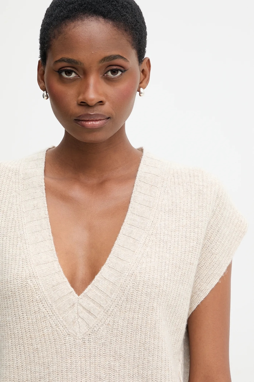 United Colors of Benetton kamizelka z dodatkiem wełny damski kolor beżowy 126WD4033