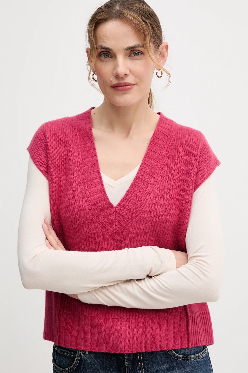 United Colors of Benetton kamizelka z dodatkiem wełny damski kolor różowy 126WD4033