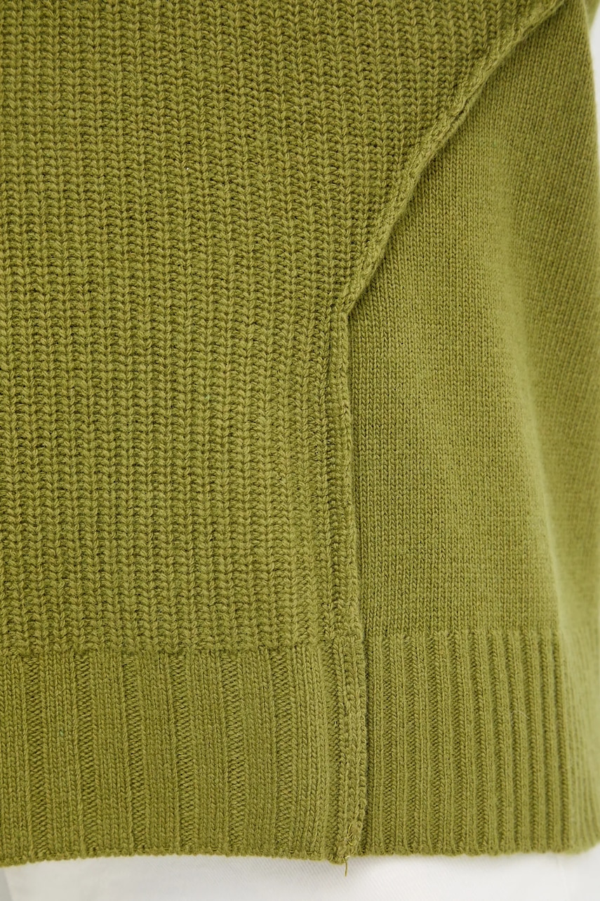 - Luźny krój zapewniający pełną swobodę ruchów. - Ozdobny, spiczasty dekolt. - Dzianina o różnych splotach. - Dzianina średniej grubości. - Długość: 58 cm. - Szerokość pod pachami: 52 cm. - Wymiary podane dla rozmiaru: S.