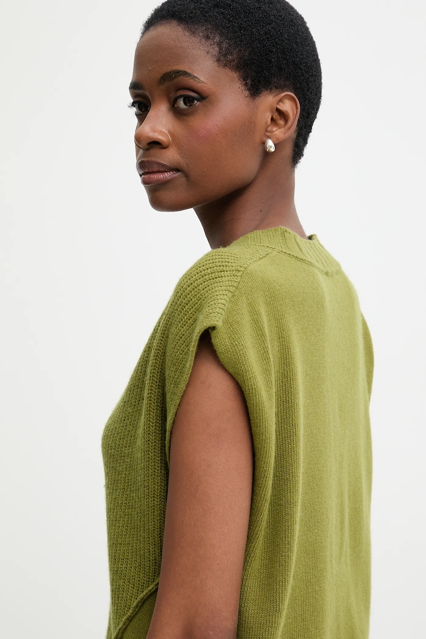 United Colors of Benetton kamizelka z dodatkiem wełny damski kolor zielony 126WD4033