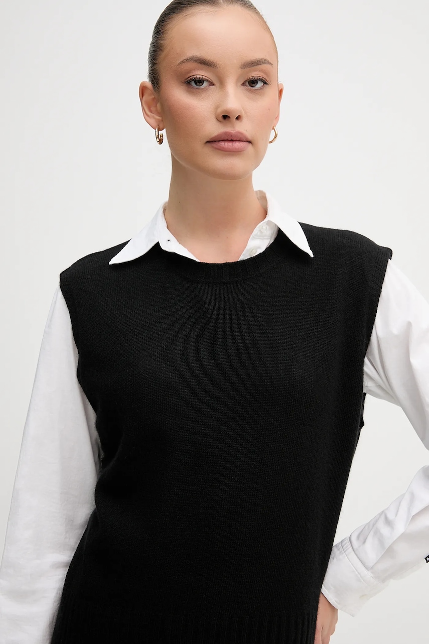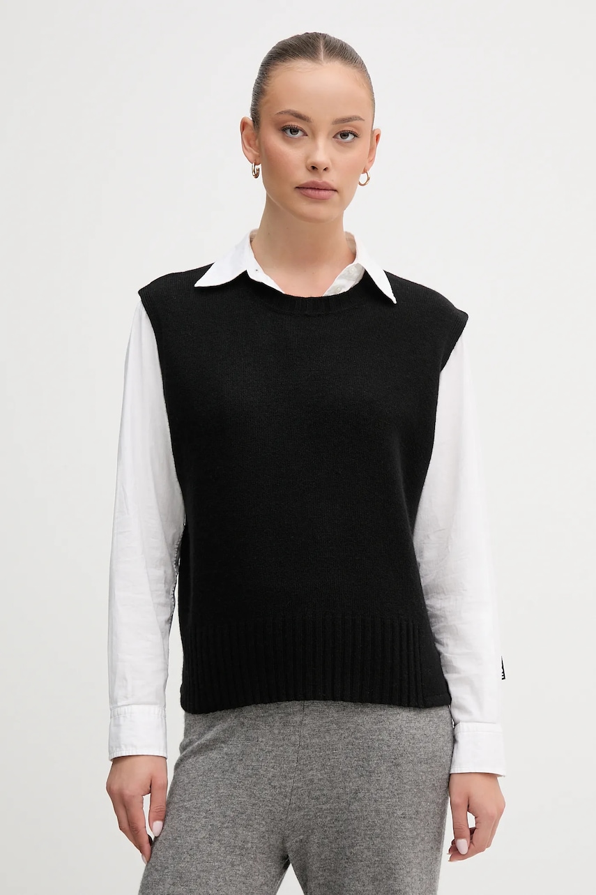 United Colors of Benetton kamizelka z dodatkiem wełny kolor czarny lekki 126WD10BA