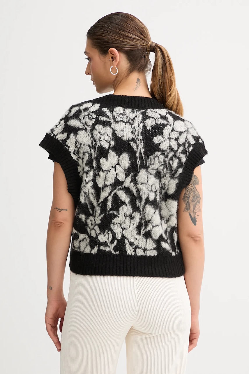 - Prosty, nie blokujący ruchów fason. - Spiczasty dekolt. - Krój rękawa z obniżoną linią ramion nie ogranicza mobilności. - Dzianina średniej grubości. - Długość: 50 cm. - Szerokość pod pachami: 50 cm. - Wymiary podane dla rozmiaru: S.