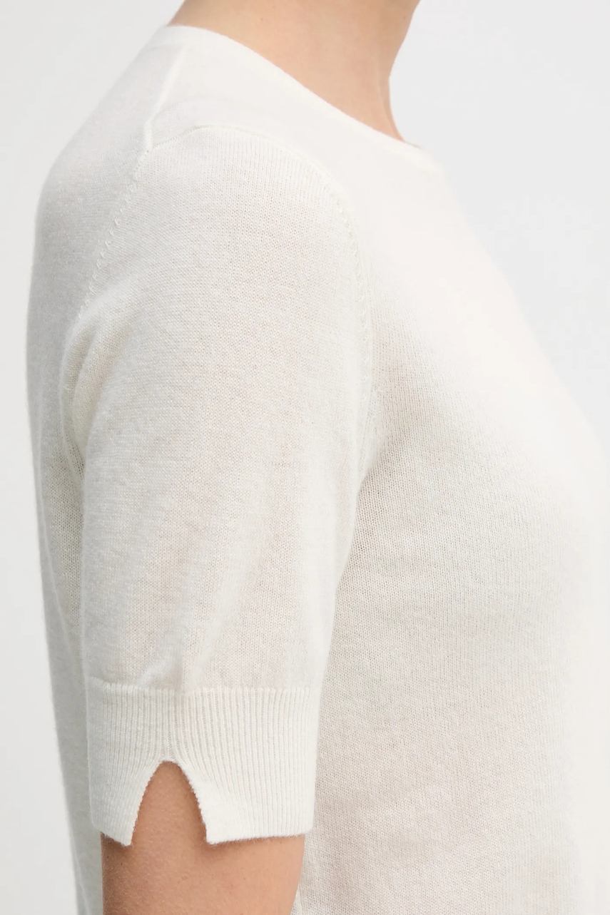 - Cienka, elastyczna dzianina. - Klasyczny, okrągły dekolt. - Krótki rękaw. - Ozdobne rozcięcia na rękawach. - Długość: 52 cm. - Szerokość pod pachami: 45 cm. - Wymiary podane dla rozmiaru: S.