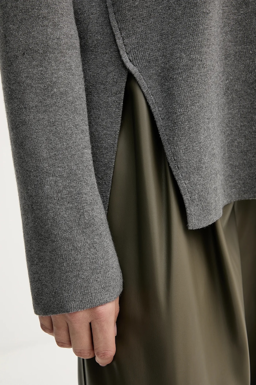 - Produkt częściowo wykonany z LENZING™ ECOVERO™ - materiału przyjaznego środowisku. Produkcja LENZING™ ECOVERO™ z ekologicznej celulozy i pulpy drzewnej wykorzystuje o 50% mniej wody w porównaniu do popularnej wiskozy. - Klasyczny, okrągły dekolt. - Ozdobne, boczne rozcięcia. - Luźny krój zapewniający pełną swobodę ruchów. - Obniżona linia ramion. - Długi rękaw. - Długość rękawa: 49 cm. - Długość: 69 cm. - Szerokość pod pachami: 51 cm. - Wymiary podane dla rozmiaru: S.