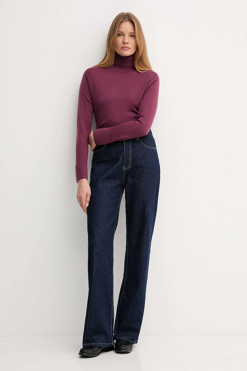 United Colors of Benetton sweter wełniany damski kolor fioletowy lekki z golfem 11AHD203Y