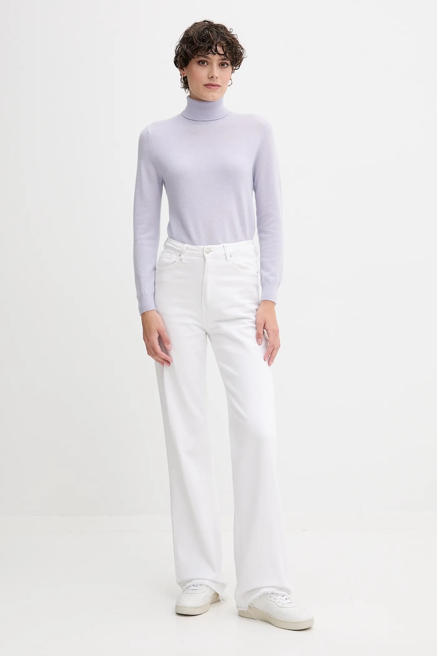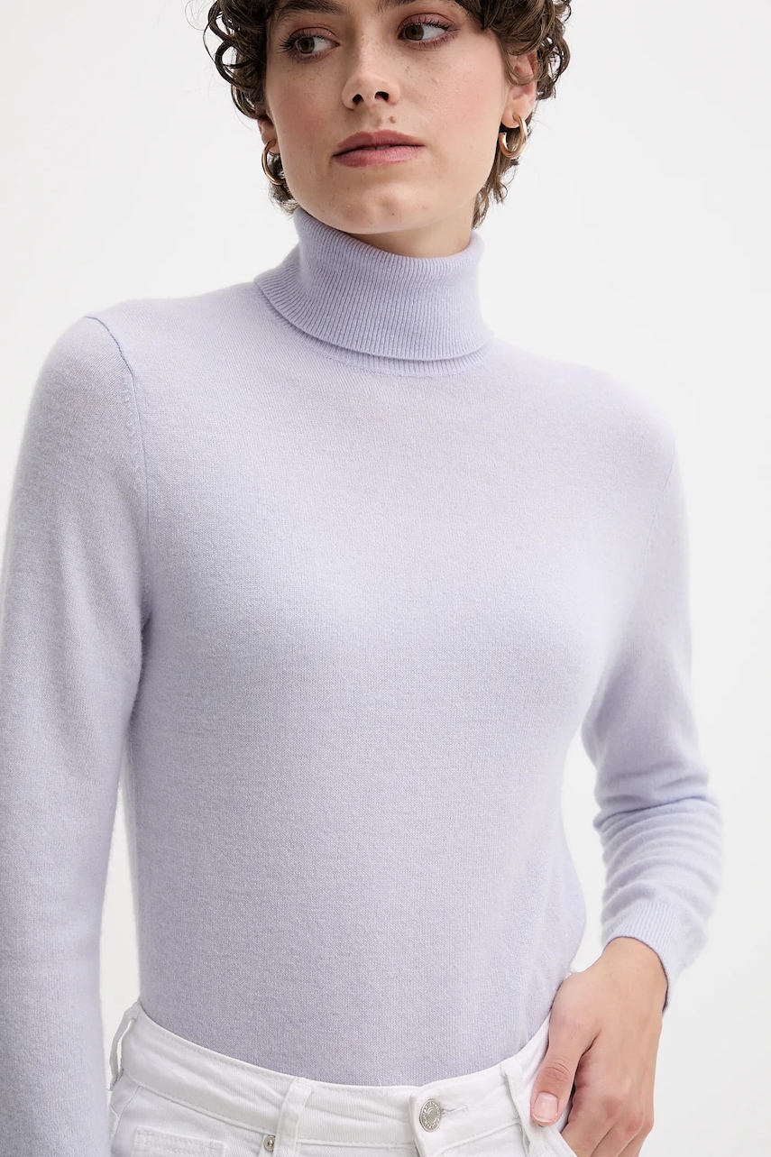 United Colors of Benetton sweter wełniany damski kolor fioletowy z golfem 1002D2348