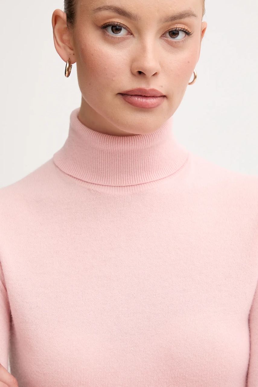 United Colors of Benetton sweter wełniany damski kolor różowy z golfem 1002D2348