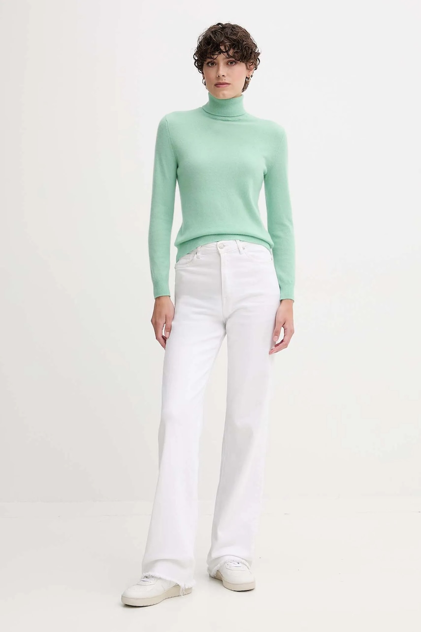 United Colors of Benetton sweter wełniany damski kolor zielony z golfem 1002D2348