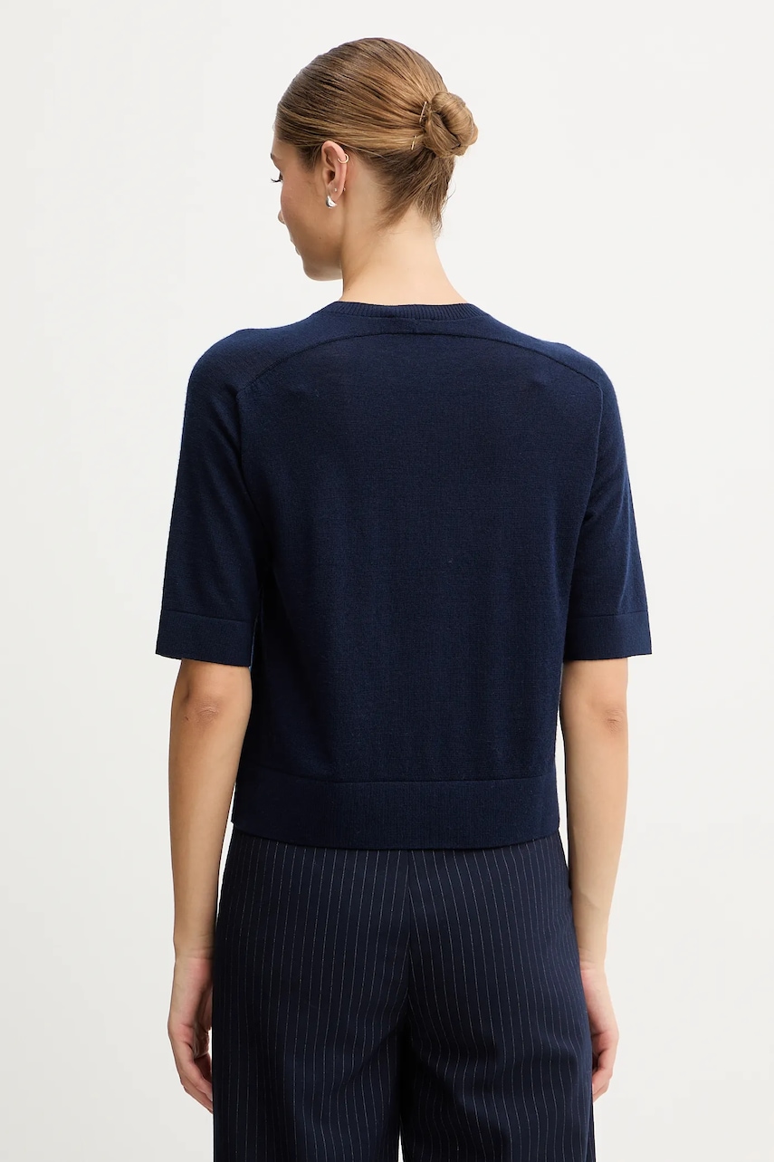 - Wyrób oznaczony certyfikatem WOOLMARK, nadawanym produktom stworzonym w 100% z czystej wełny. - Prosty, nie blokujący ruchów fason. - Klasyczny, okrągły dekolt. - Krótki rękaw. - Rękawy i dolna krawędź wykończona wygodnym, elastycznym ściągaczem. - Długość: 49 cm. - Szerokość pod pachami: 41 cm. - Wymiary podane dla rozmiaru: S.