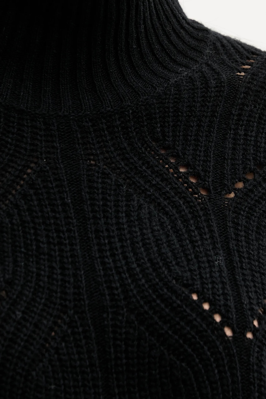 United Colors of Benetton sweter z dodatkiem wełny damski kolor czarny lekki z półgolfem 1FDFD10F2