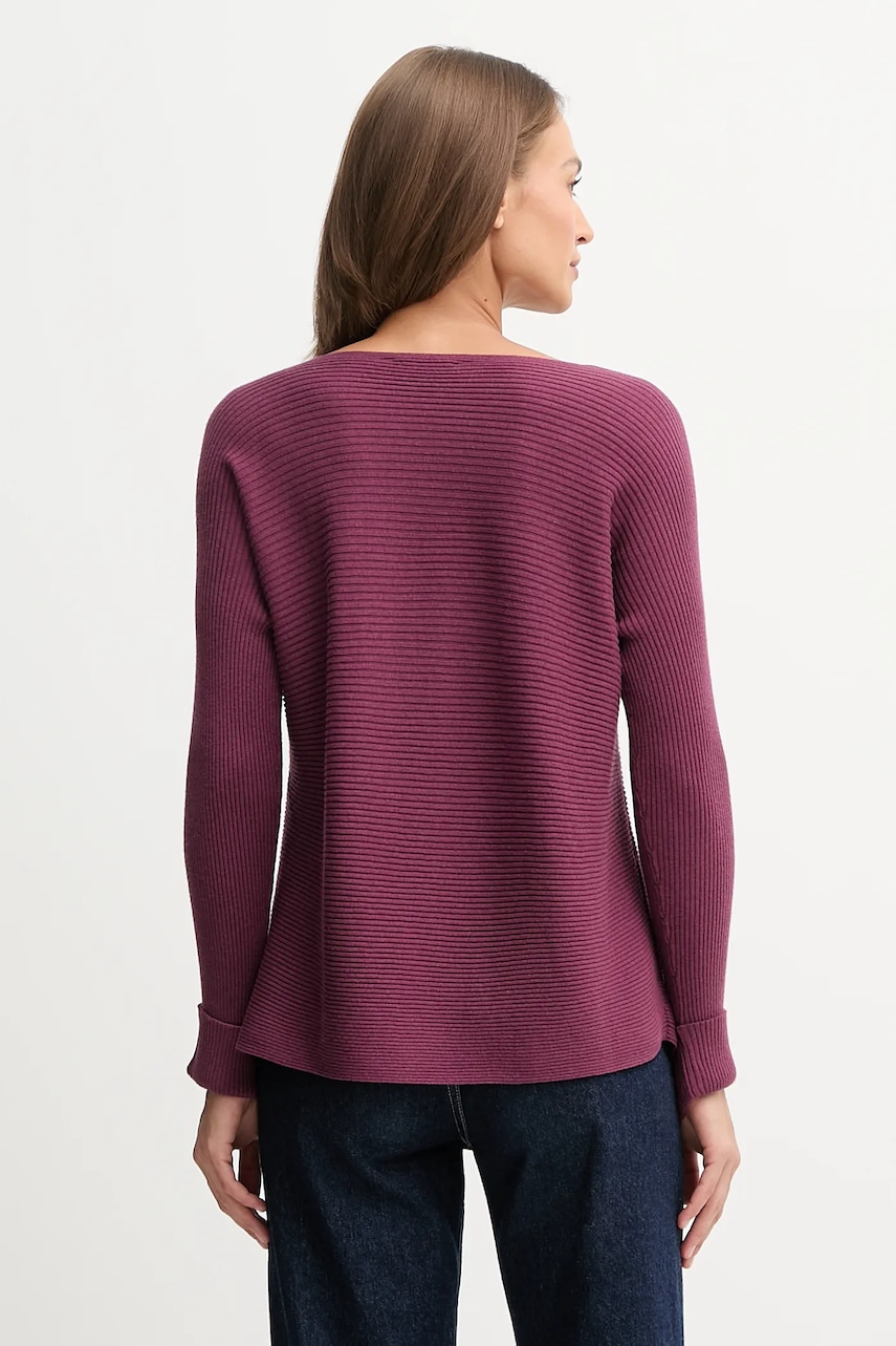 - Luźny krój zapewniający pełną swobodę ruchów. - Klasyczny, okrągły dekolt. - Długi rękaw. - Krój rękawa z obniżoną linią ramion nie ogranicza mobilności. - Prążkowana struktura materiału sprawia, że jest on niezwykle elastyczny i doskonale przylega do ciała. - Długość rękawa(mierzona od dekoltu): 66 cm. - Długość: 66 cm. - Szerokość pod pachami: 55 cm. - Wymiary podane dla rozmiaru: S.