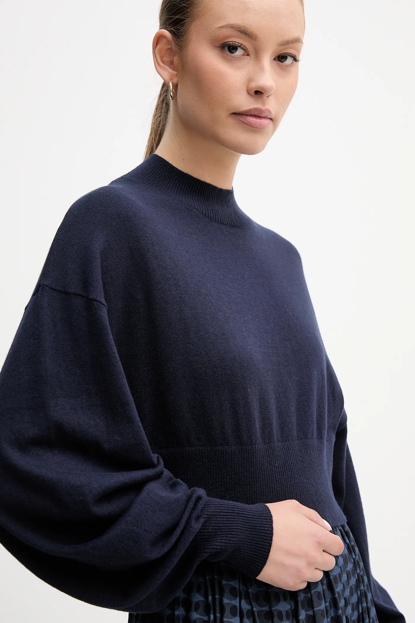 United Colors of Benetton sweter z dodatkiem wełny damski kolor granatowy lekki z półgolfem 1Y6SD2041