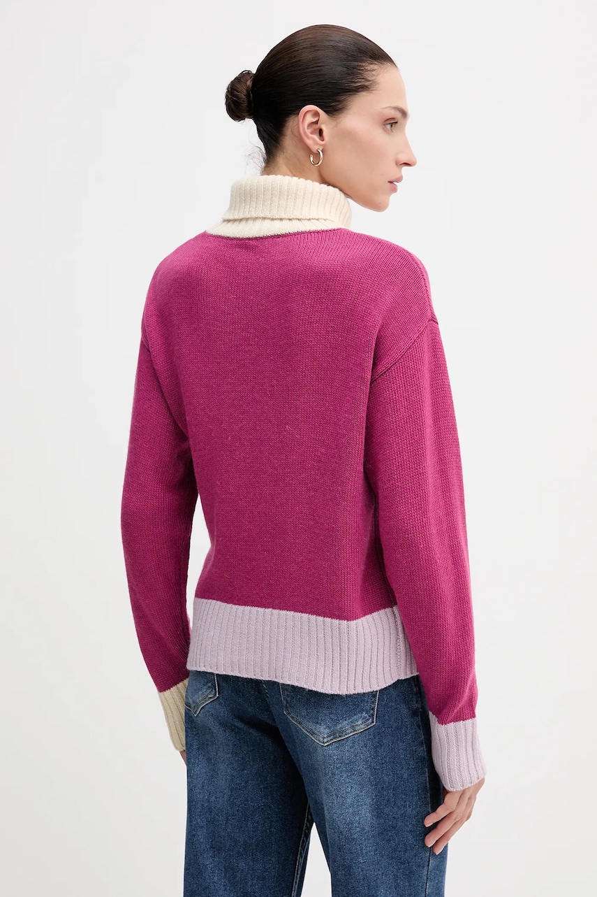 United Colors of Benetton sweter z dodatkiem wełny damski kolor różowy z golfem 16YCE204I