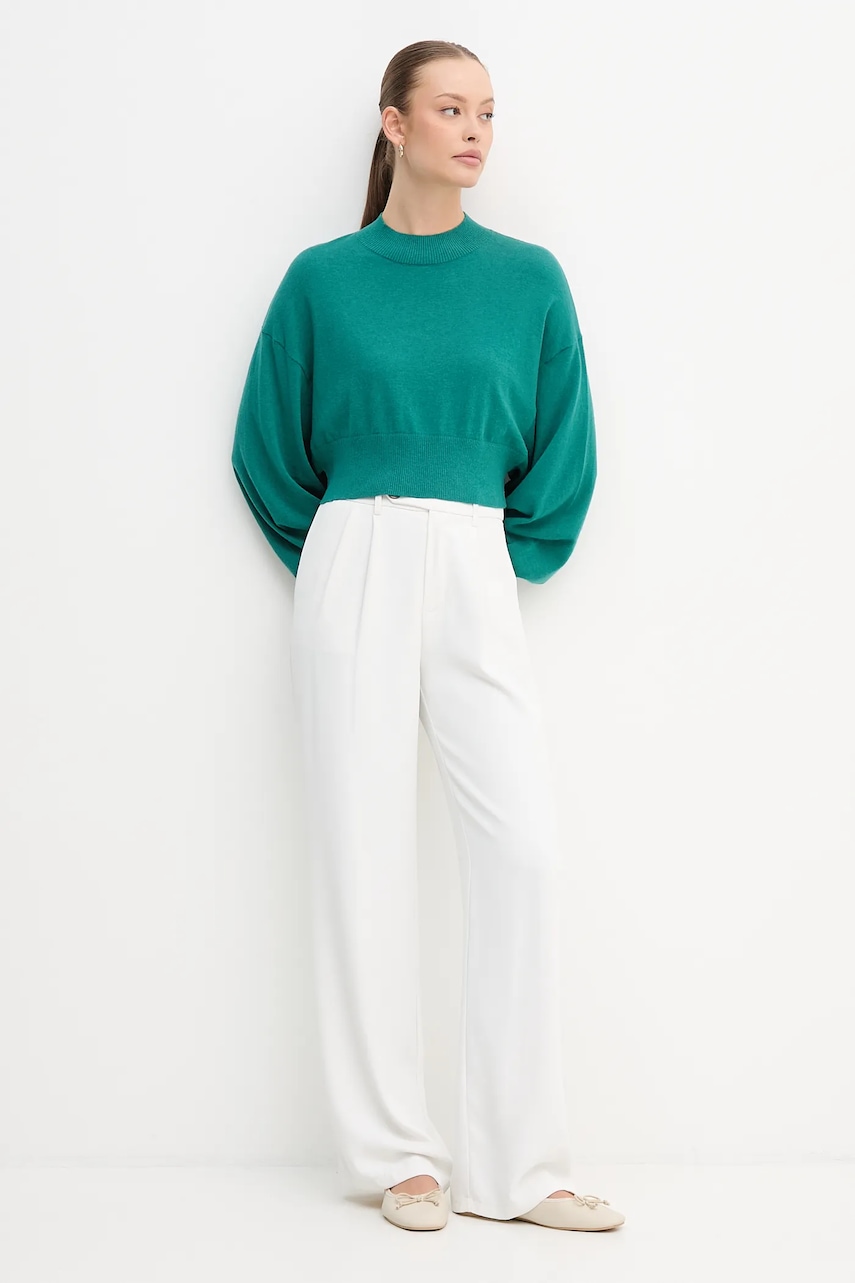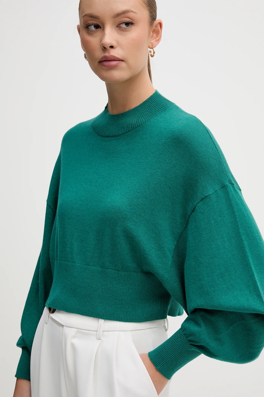 United Colors of Benetton sweter z dodatkiem wełny damski kolor zielony lekki z półgolfem 1Y6SD2041