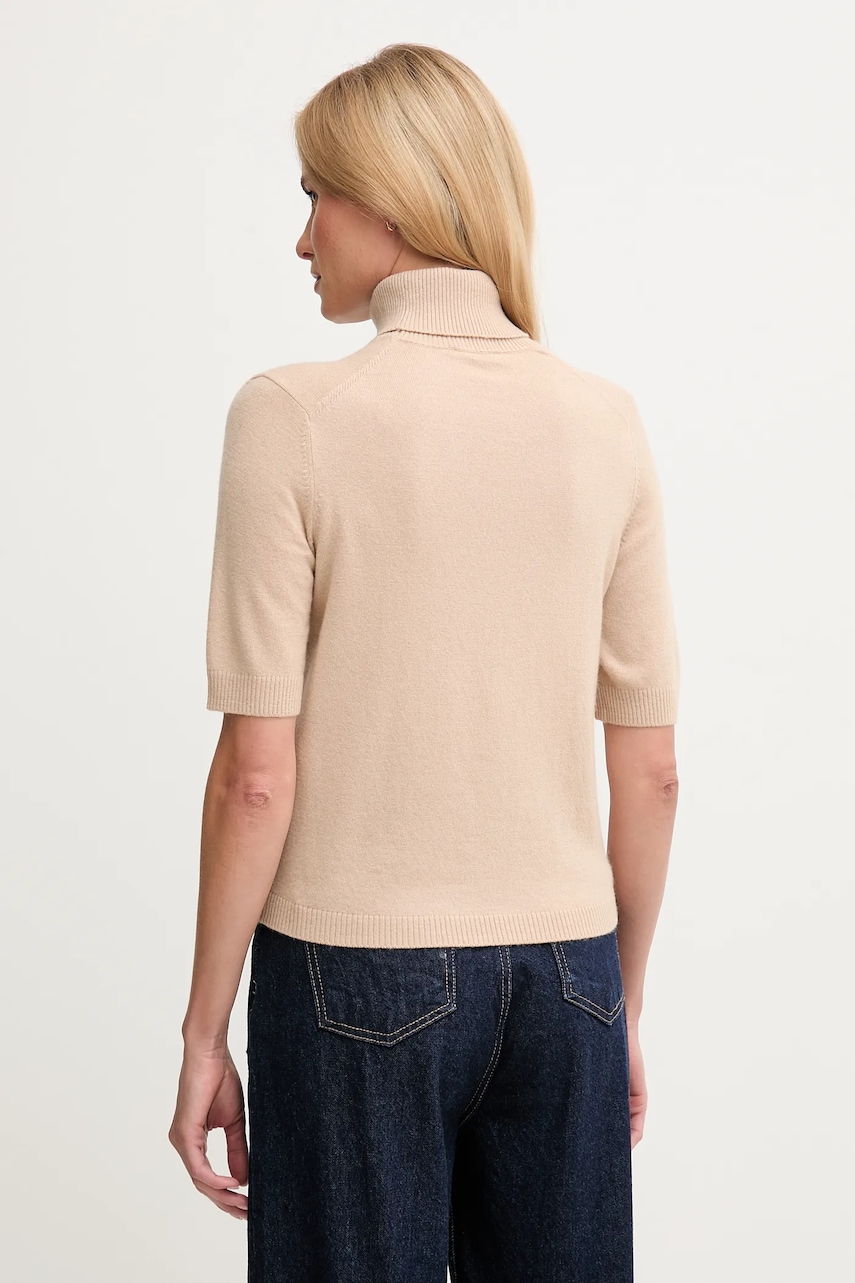 United Colors of Benetton sweter z dodatkiem wełny dziecięcy damski kolor beżowy lekki z golfem 102HD203X