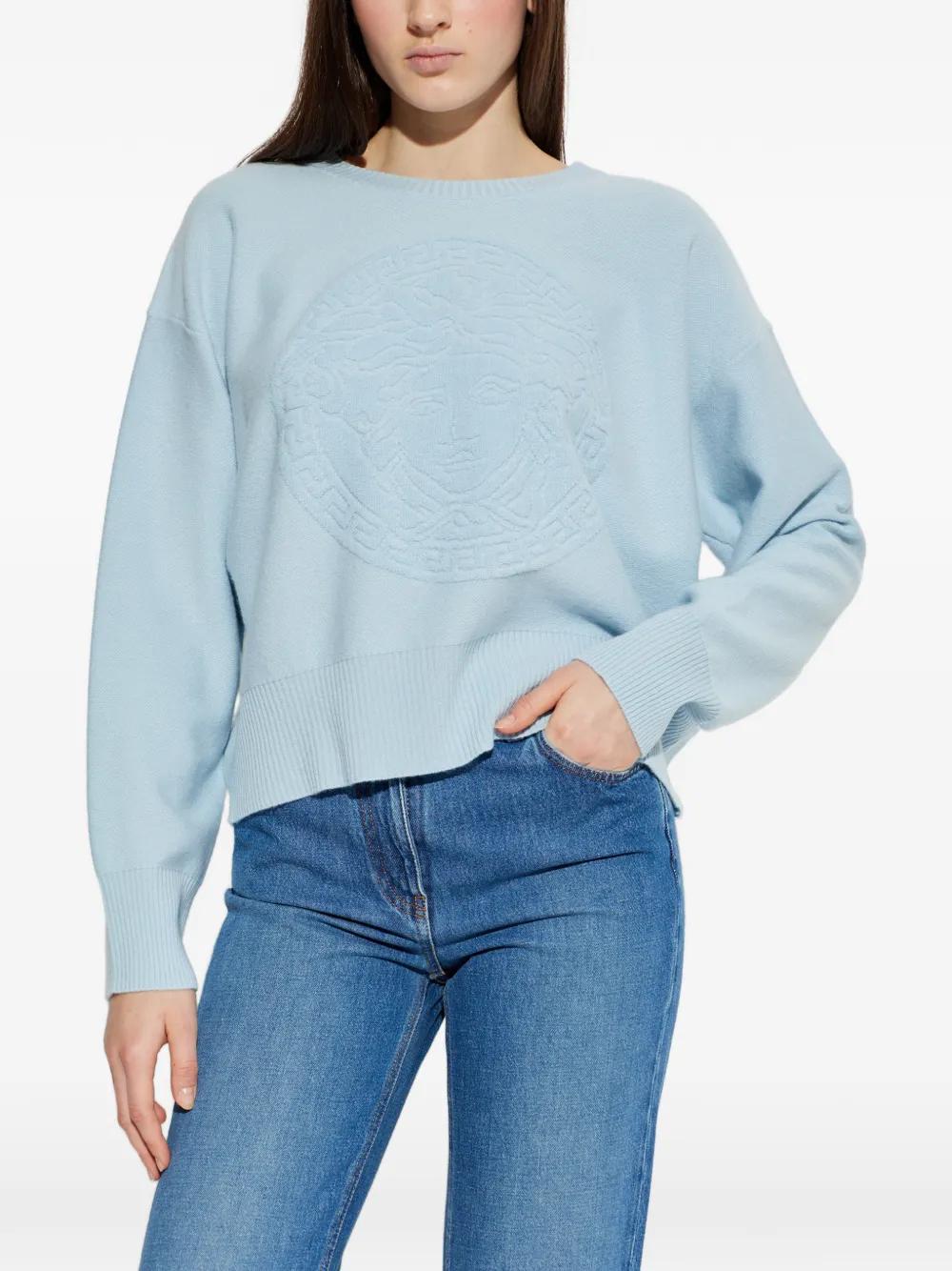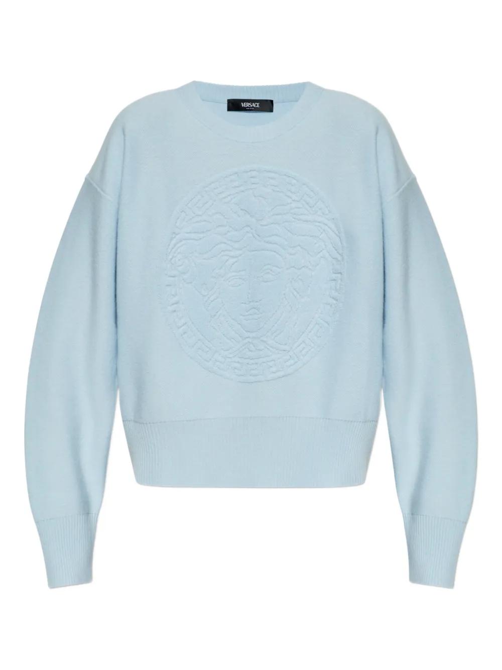 light blue Medusa motif round neck long sleeves ribbed hem and cuffs