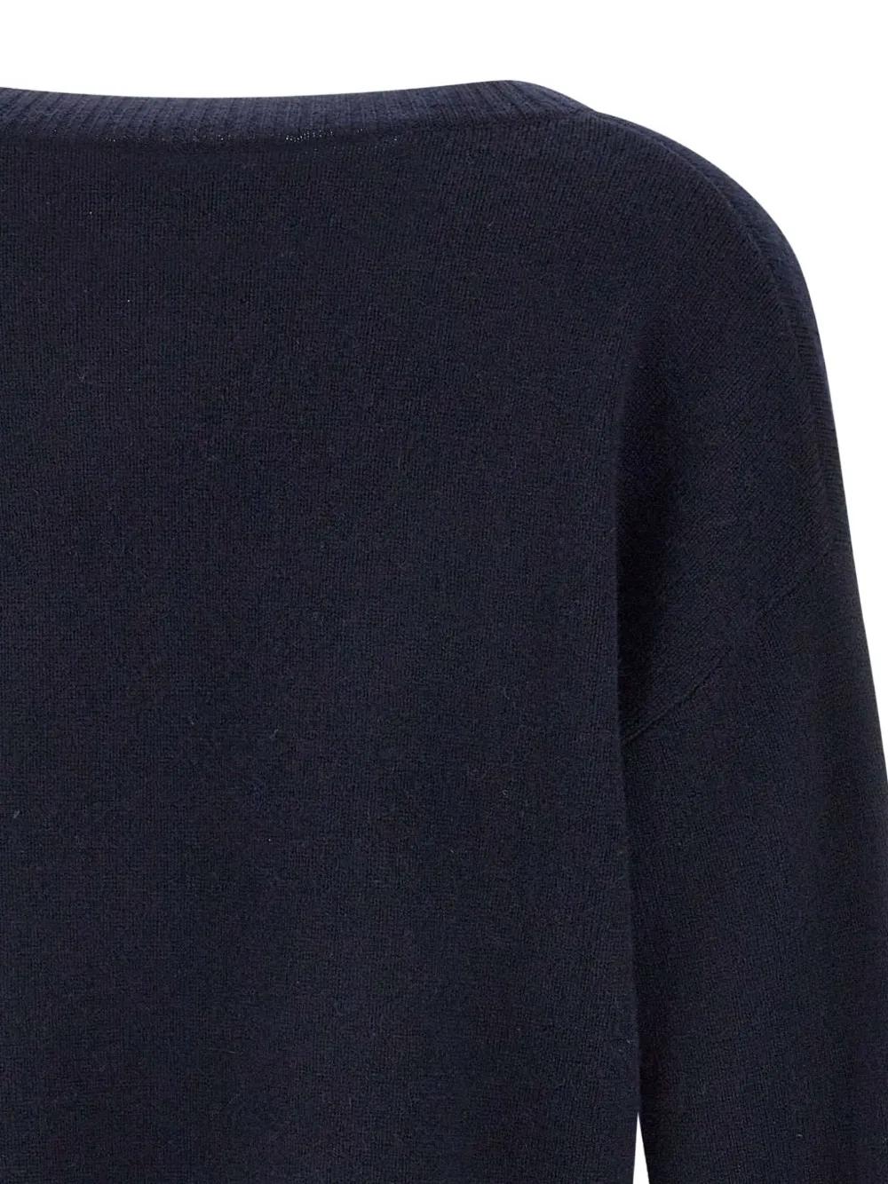 blue v-neck ribbed hems side slits long sleeves cashmere