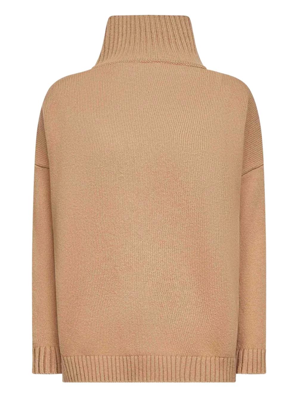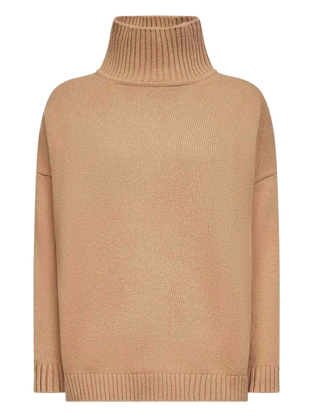 beige ribbed turtleneck collar long sleeves dropped shoulders ribbed trims