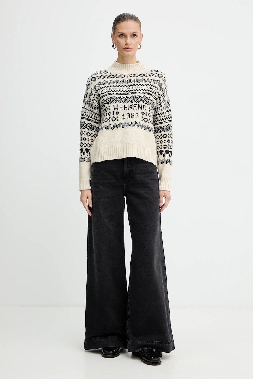 Weekend Max Mara sweter z dodatkiem wełny BRIOSO damski kolor beżowy z półgolfem 2525366053600