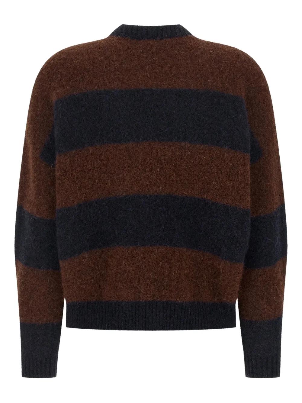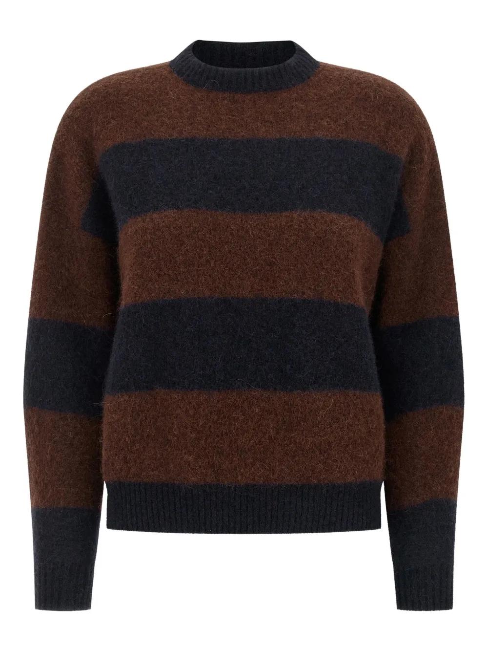 brown multicoloured striped crew neck long sleeves cuffed sleeves dropped shoulders