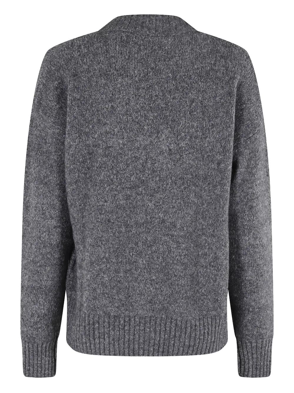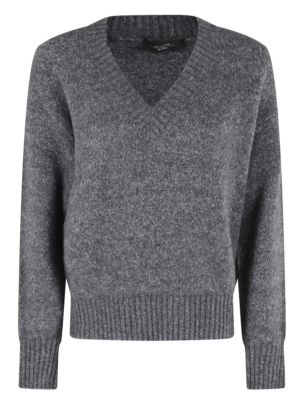 grey V-neck ribbed cuffs ribbed hem long sleeves