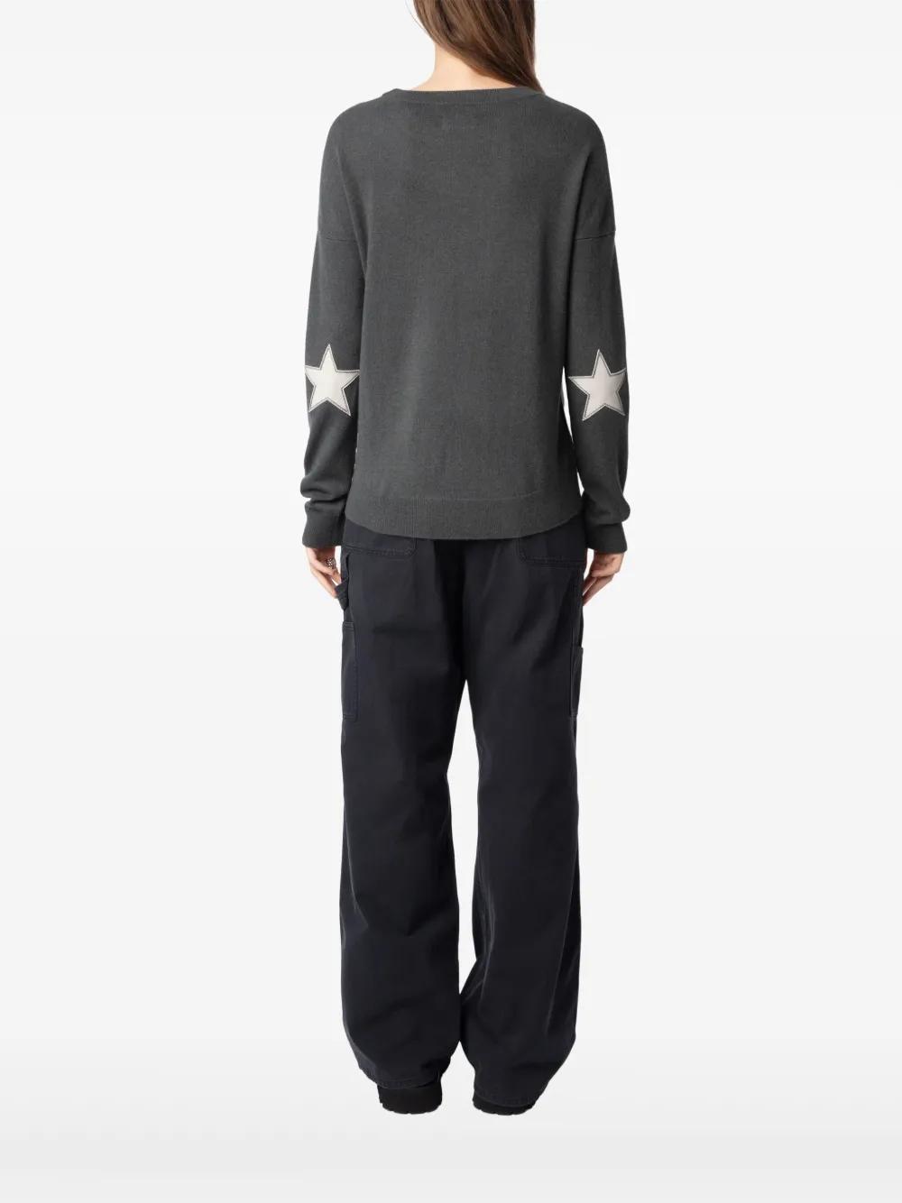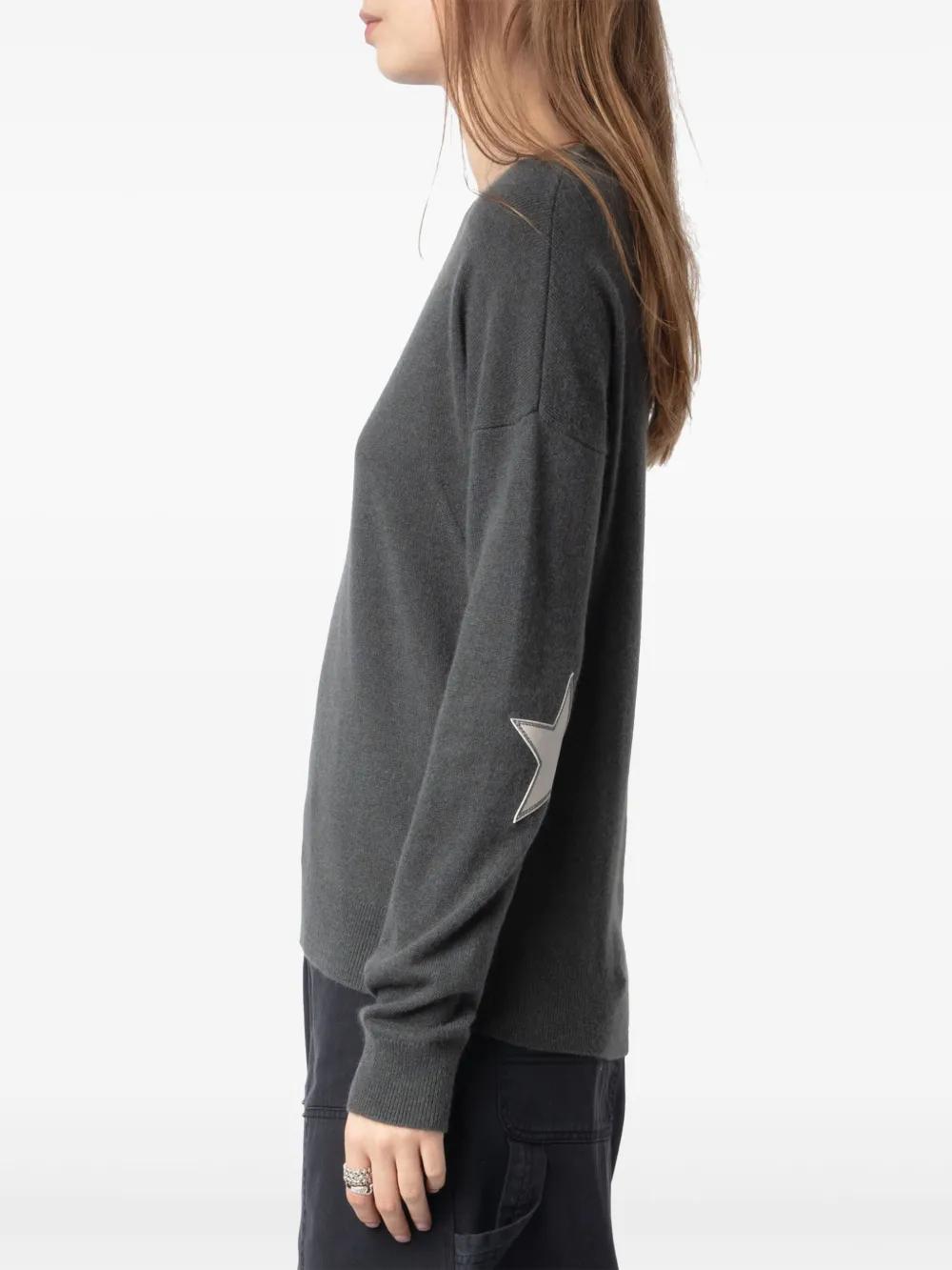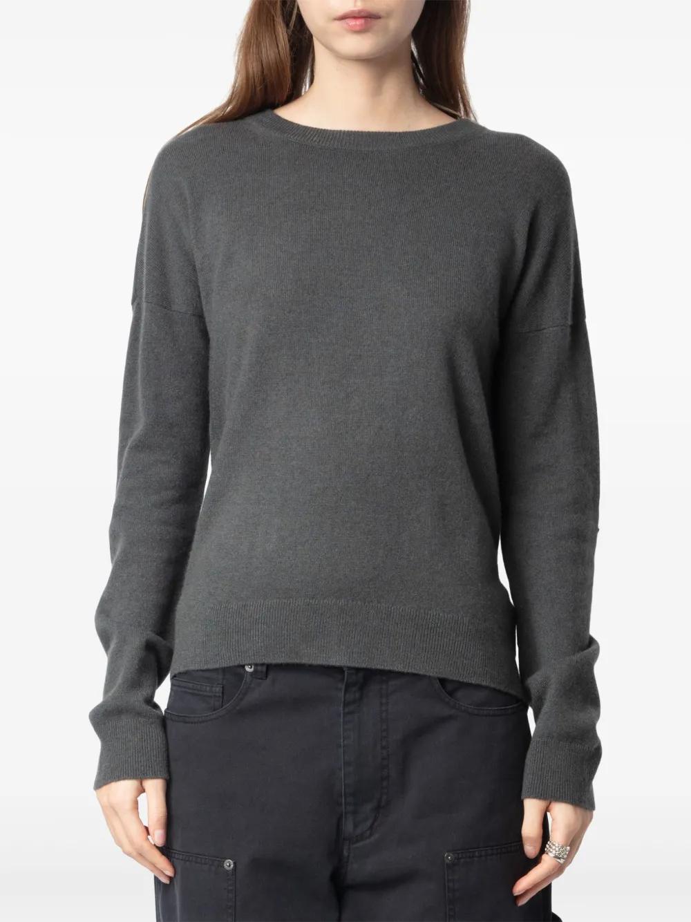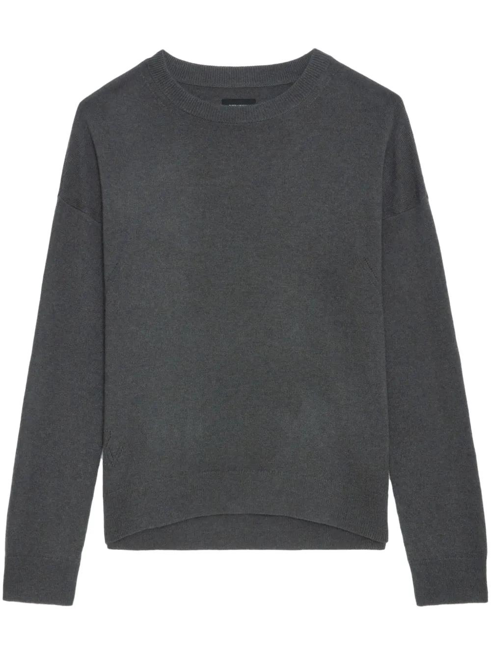 dark grey crew neck long sleeves ribbed cuffs and hem