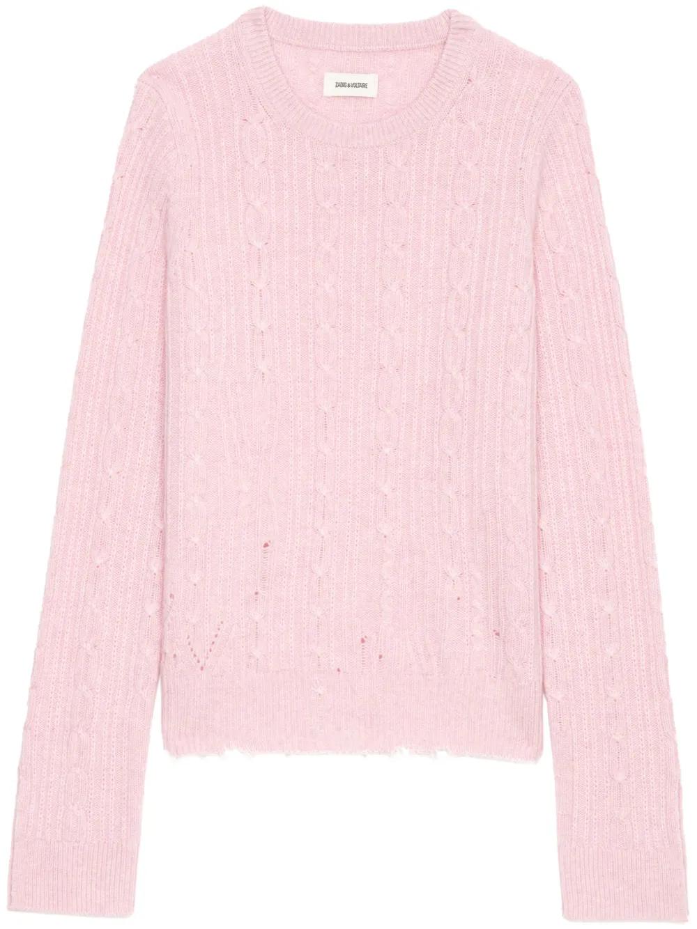 beige intarsia-knit ribbed crewneck long sleeves ribbed cuffs and hem